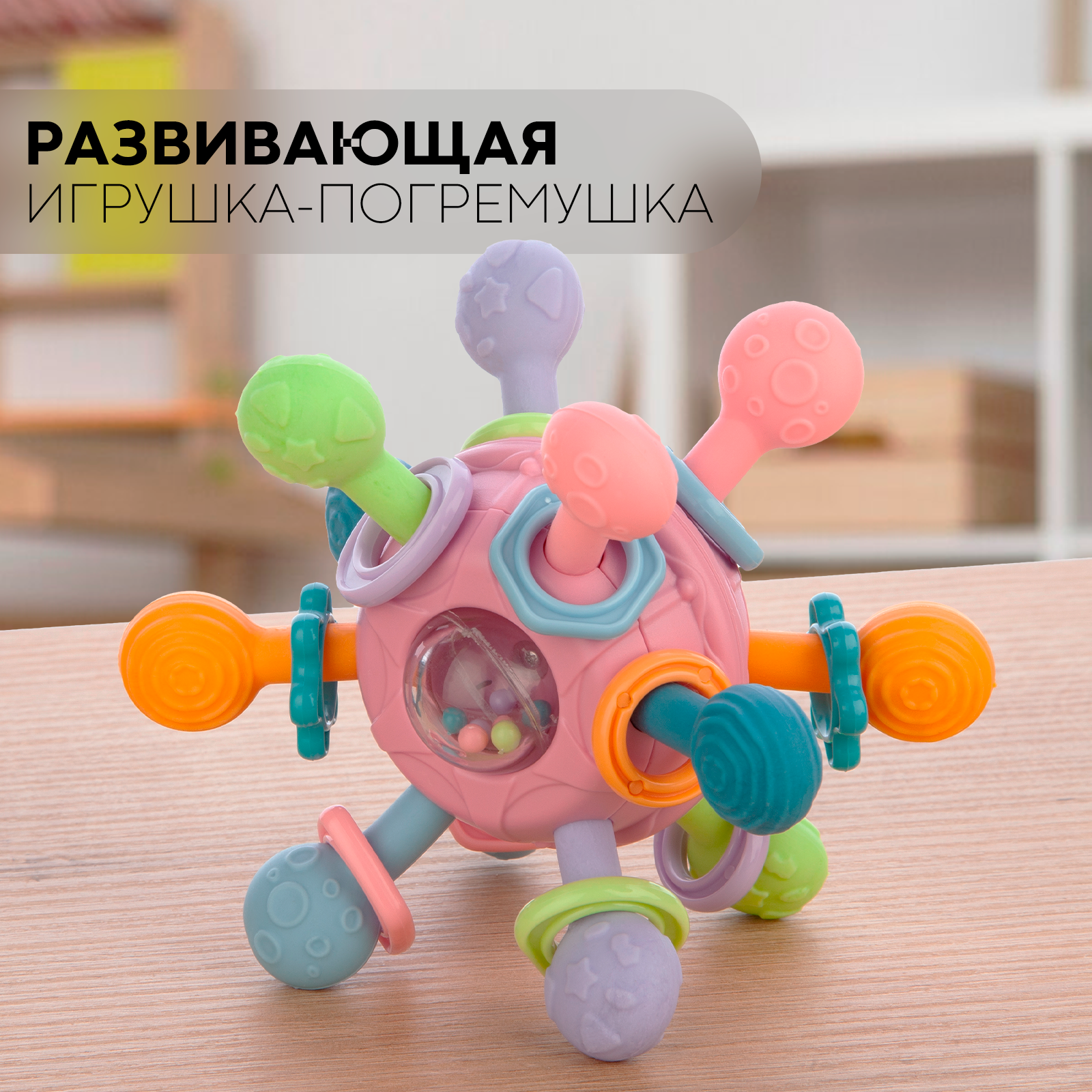 Развивающий грызунок-погремушка шар для детей, бренд Картофан, розовый информация:
