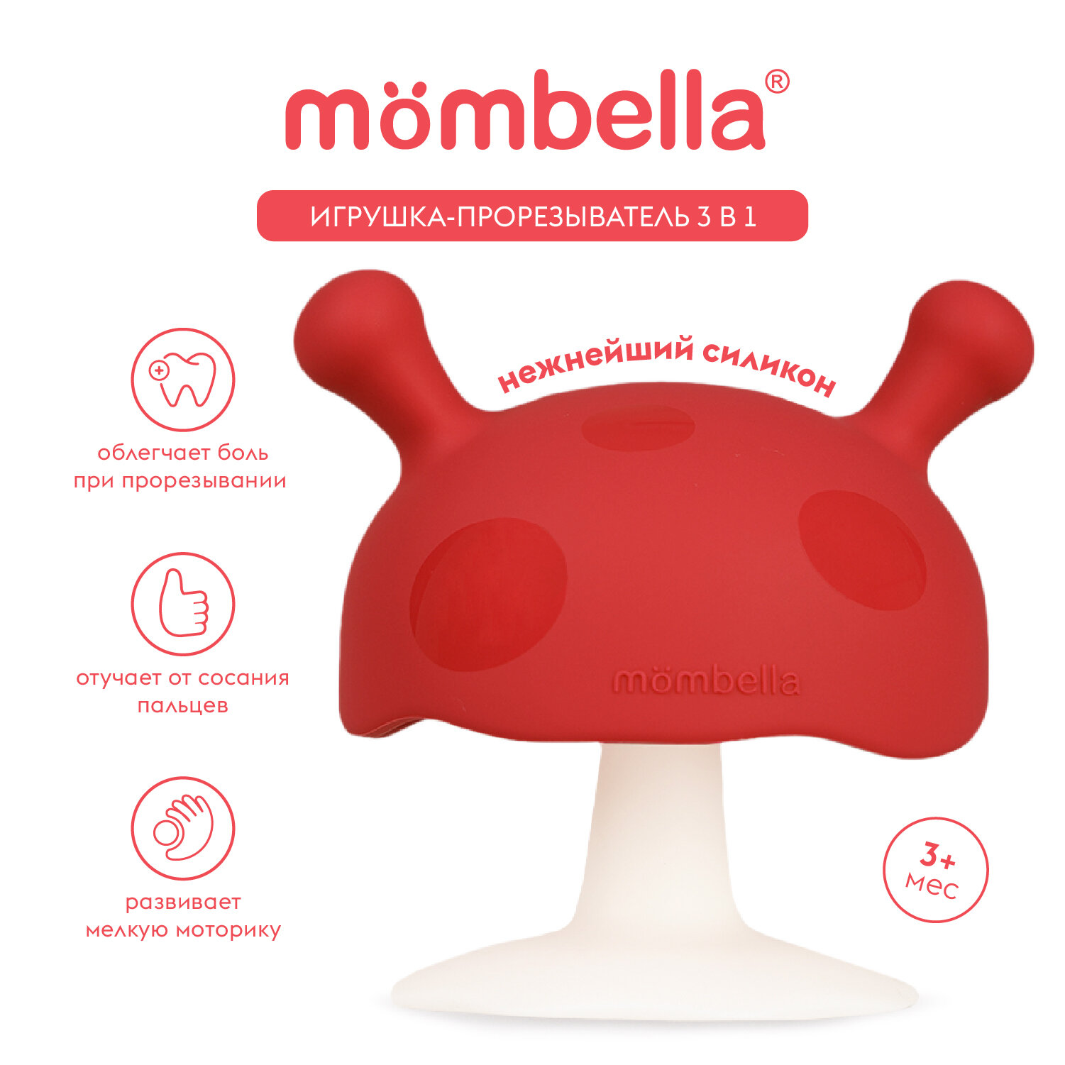 Отзывы на Прорезыватель грызунок для зубов Грибочек 3в1 Mombella, 3+ мес, силиконовый, красный