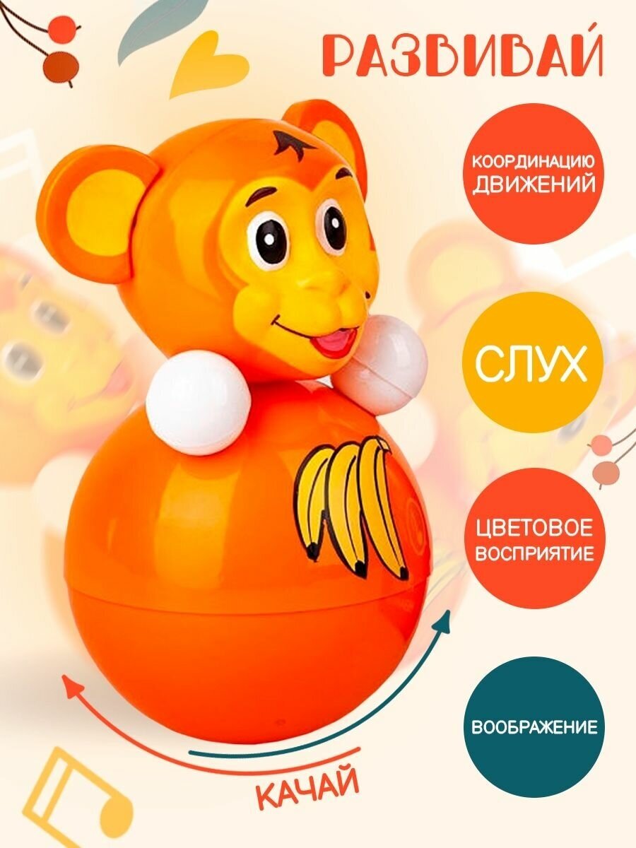 Неваляшка для малышей музыкальная игрушка детская обезьянка информация: