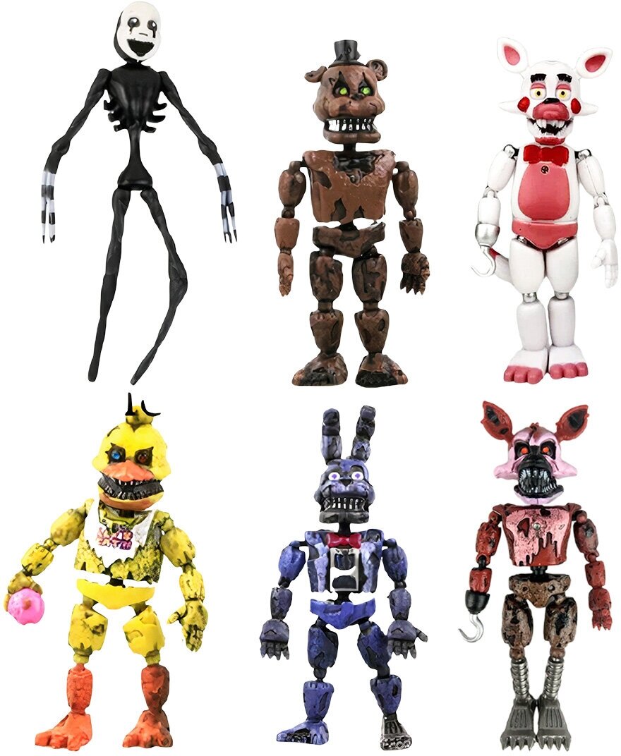 10 цен на Фигурки аниматроники фнаф 6 в 1 Фредди Бонни Фокси Марионетка Чика Мангл 14-18 см подсветка