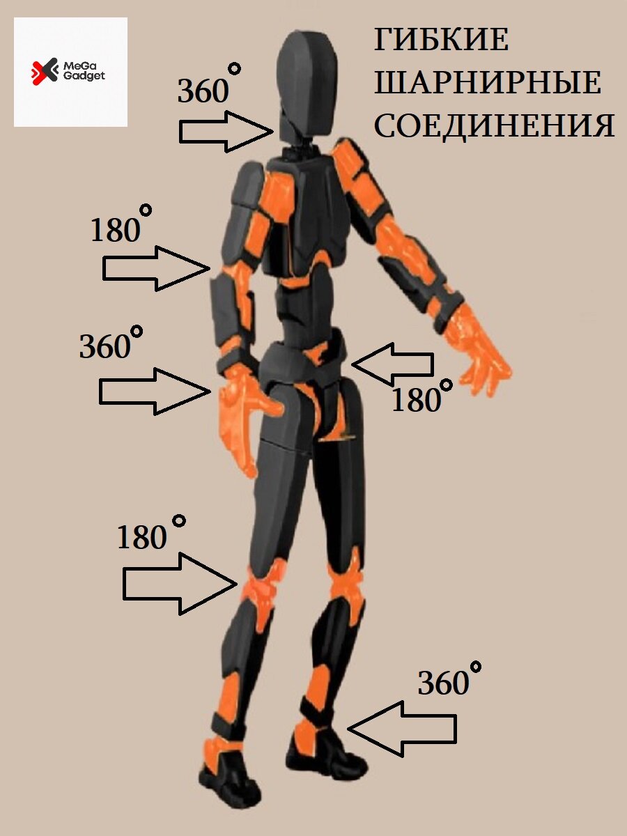 Отзывы на Подвижный шарнирный конструктор из пластика робот Dummy13 черно-оранжевый цвет