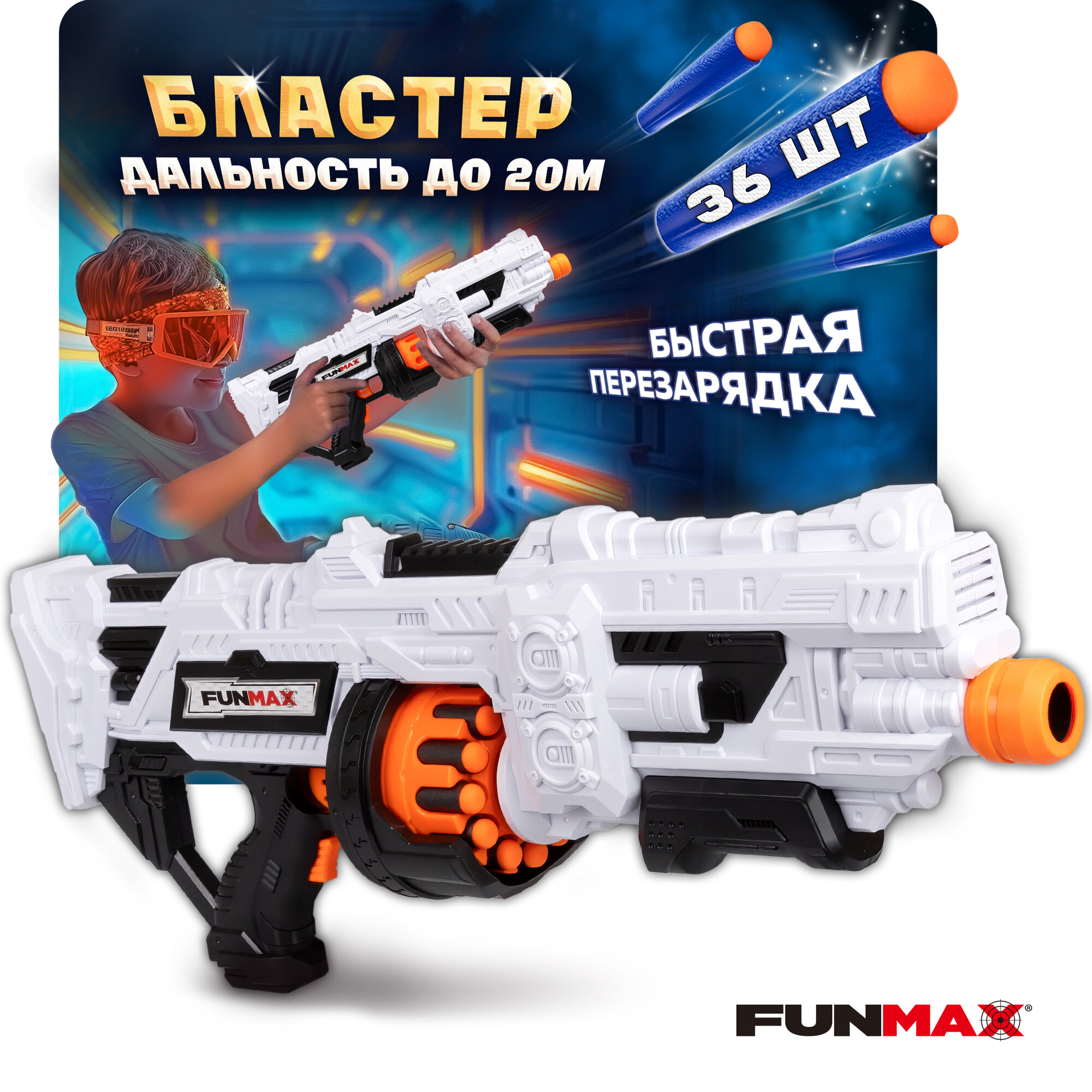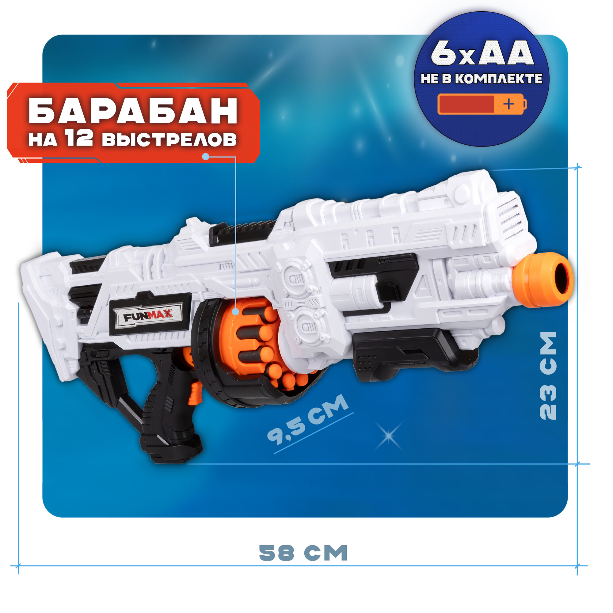 1toy Funmax "A74" бластер электрический, барабан на 12 выстрелов, в комплекте 36 EVA снарядов информация: