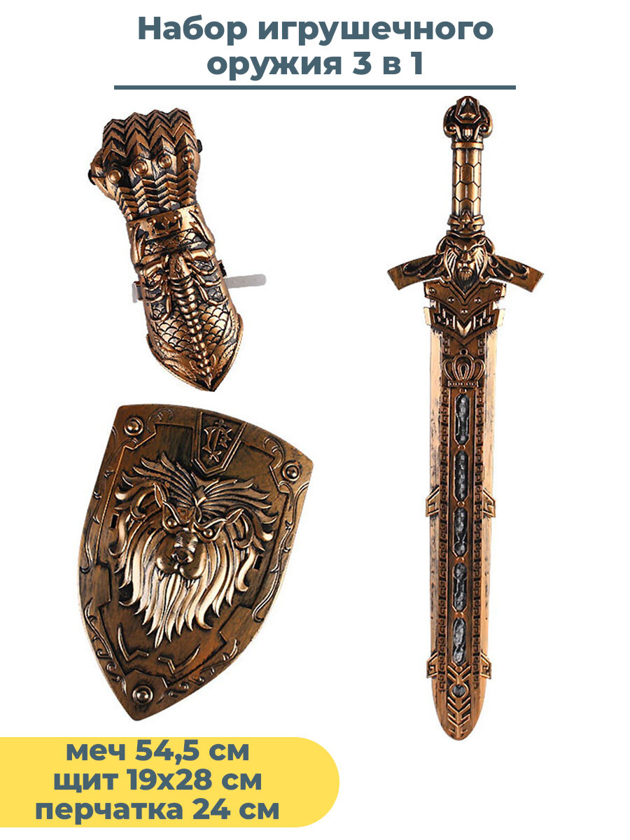 Набор игрушечного оружия 3 в 1 щит меч с ножнами перчатка информация: