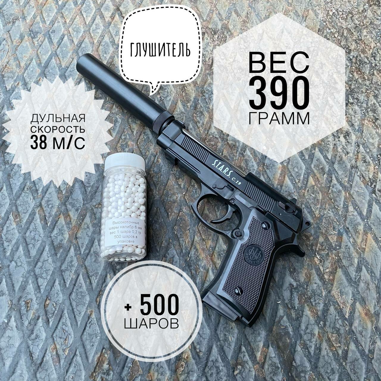 10 цен на Тяжелый игрушечный пистолете с глушителем Beretta (Беретта) в комплекте с 500 пластиковыми пульками 6 мм