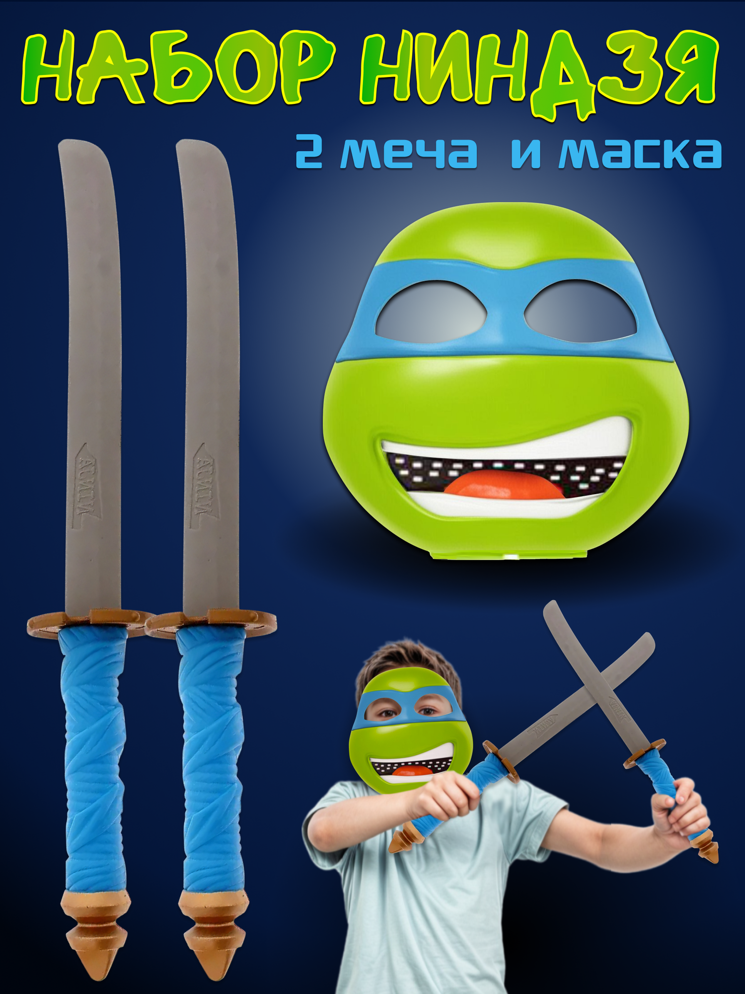 Набор игрушечное оружие Ниндзя 2 меча, маска черепашки для мальчиков информация: