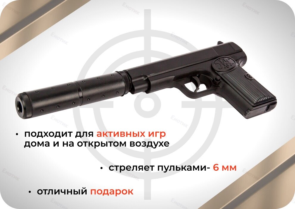 Отзывы на Пистолет детский пневматический металлический с глушителем, съемный магазин в кор. 21*4*13см