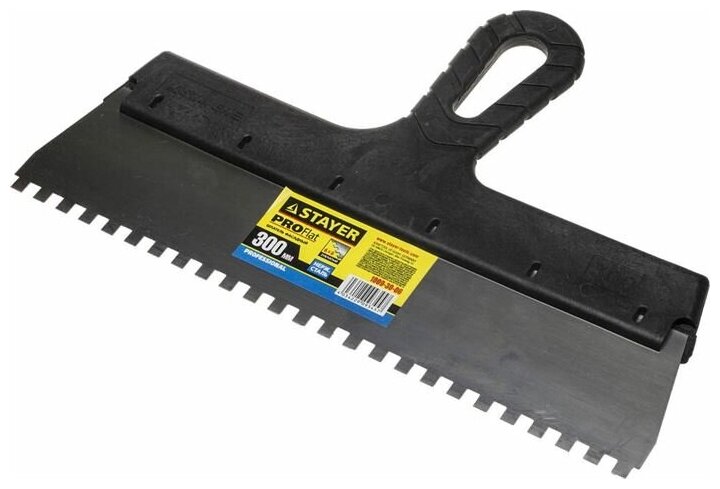 Шпатель Stayer "professional" нержавеющий зубчатый с пластмассовой ручкой, 300мм, зуб 6х6мм1009-30-0 .