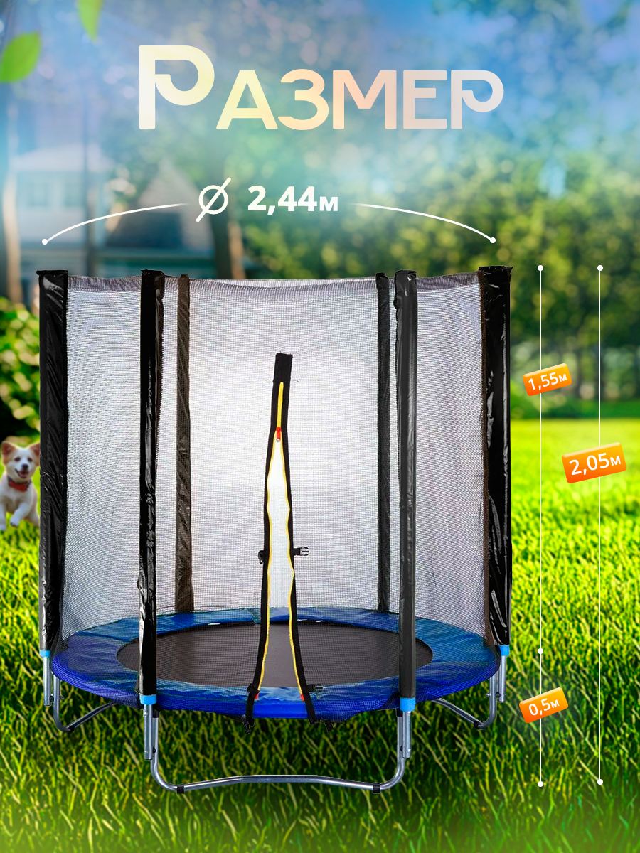 Батут каркасный уличный для детей с защитной сеткой 244х205 см max 220 кг, (синий) 0803SD информация: