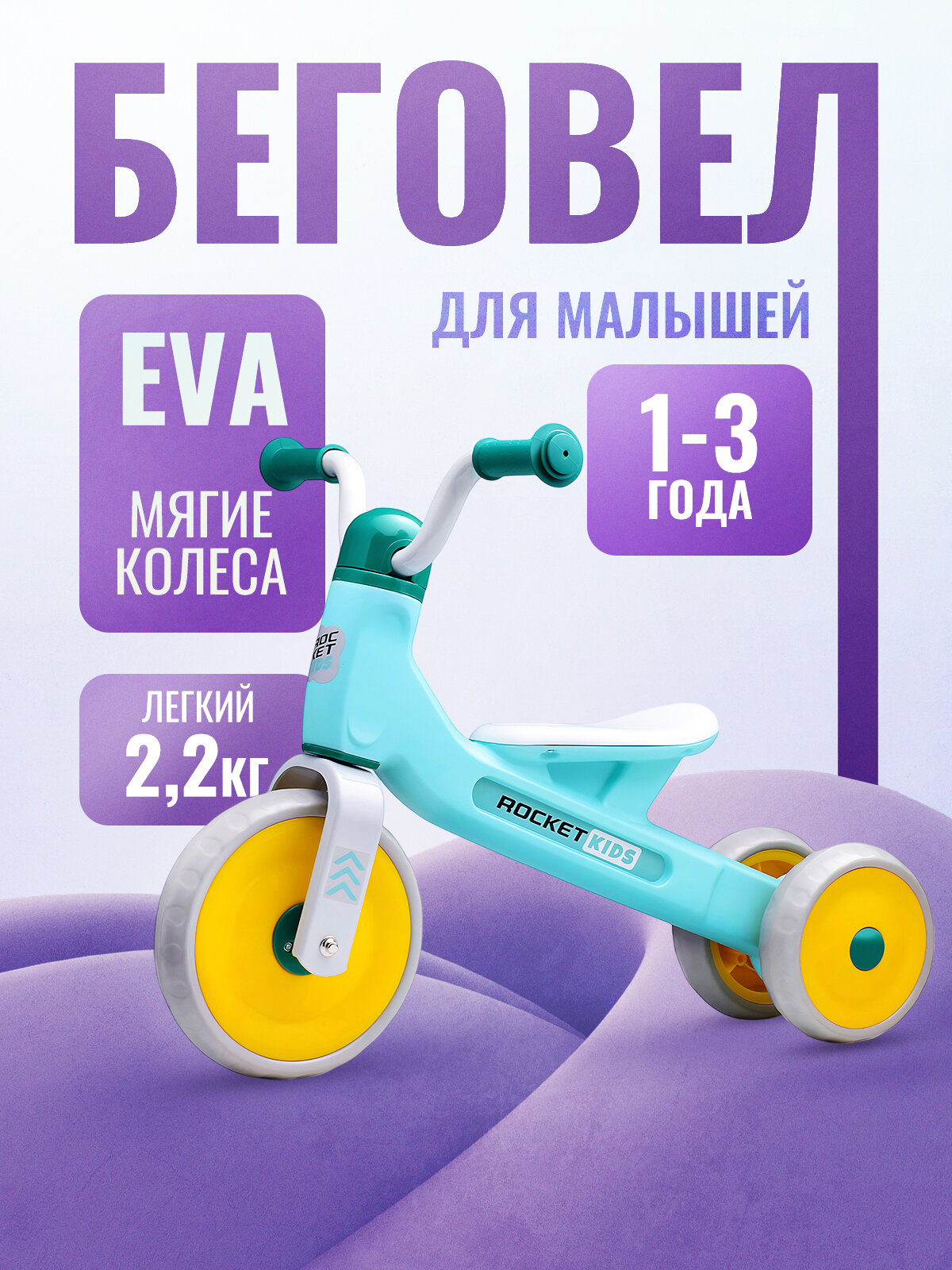 Беговел трехколесный Rocket 133-GN, колеса EVA, цвет зеленый для детей от 1,5 до 3 лет. информация: