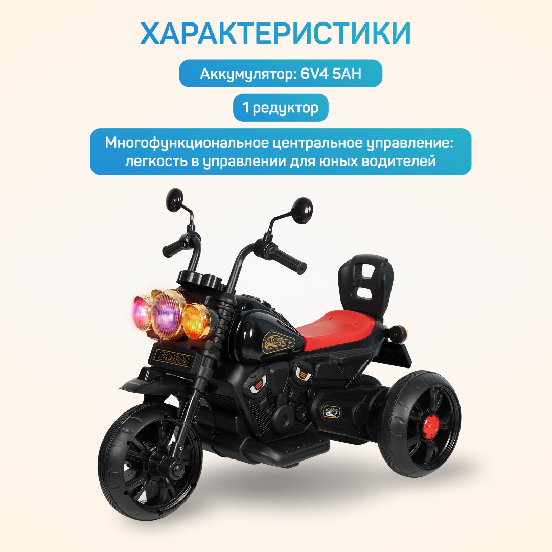 Детский электромобиль мотоцикл для детей Farfello SR9909, черный информация: