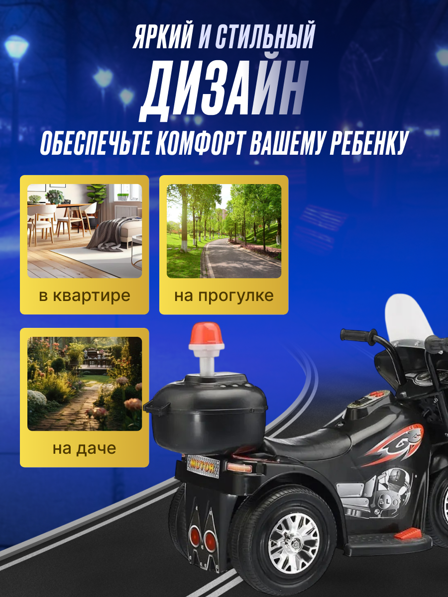 Отзывы на Электромобиль "Мотоцикл", аккумуляторный, одноместный, нагрузка до 25кг, черный