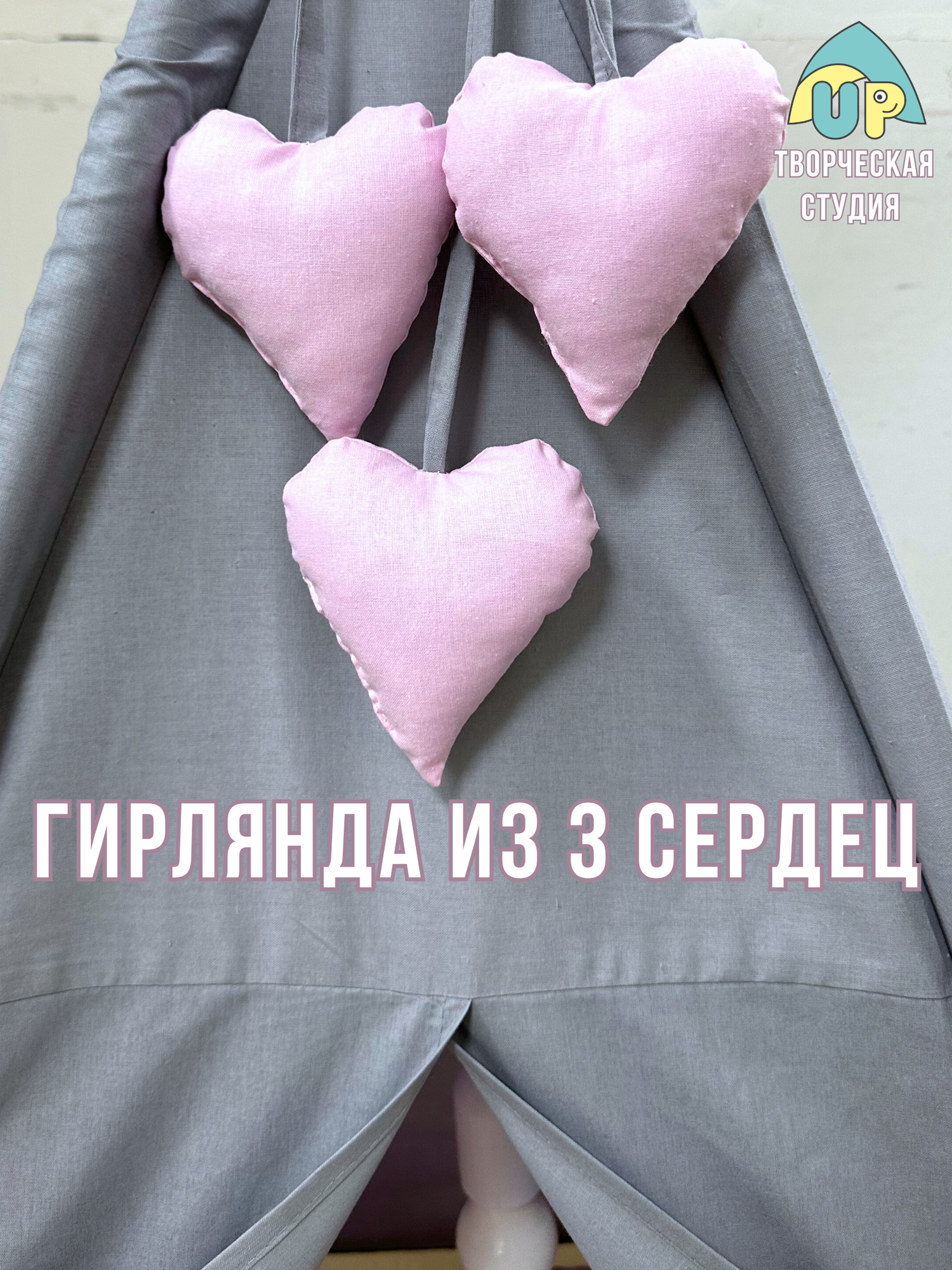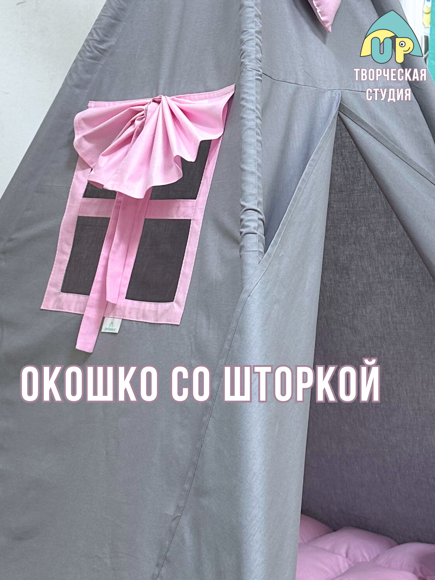Вигвам детский "UP" Розовое Сердце с ковриком, подушкой, лампочкой, 100х100см информация: