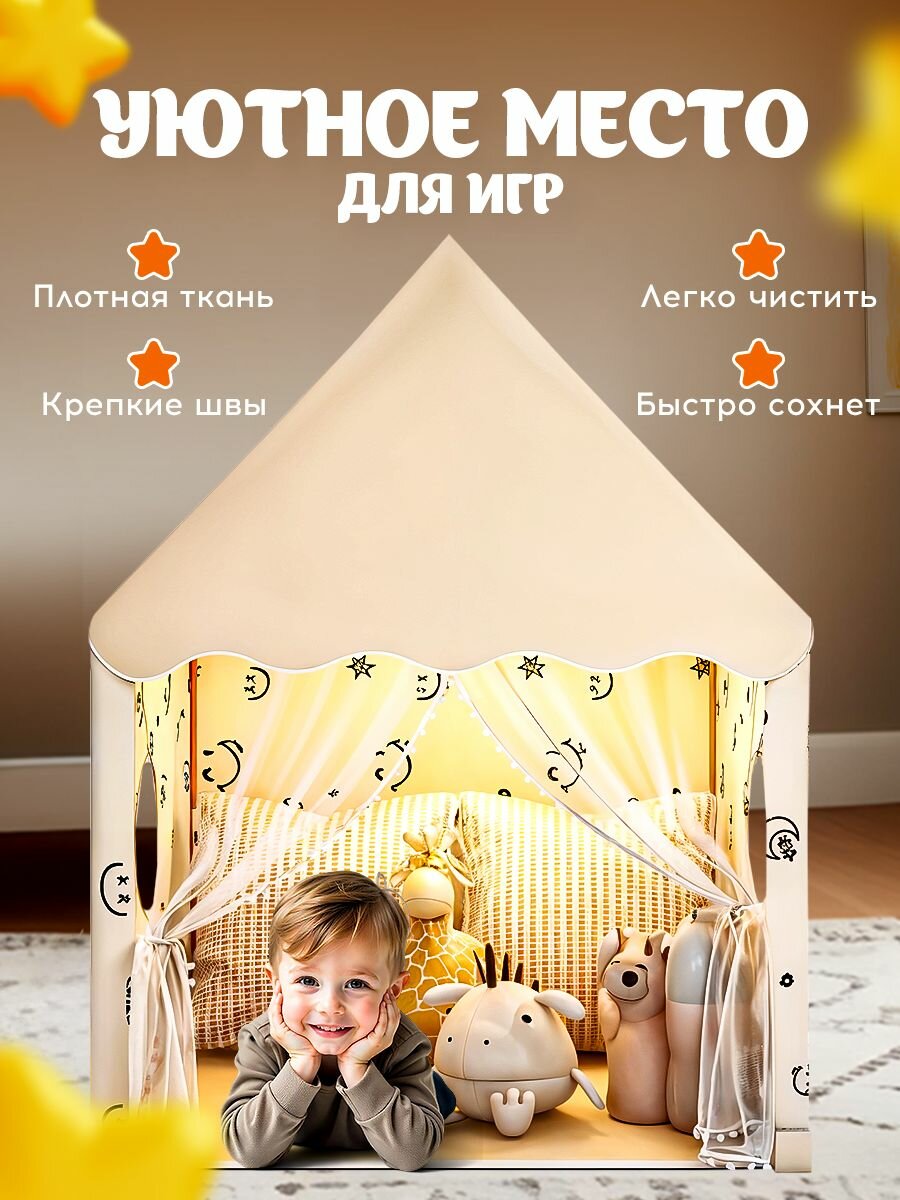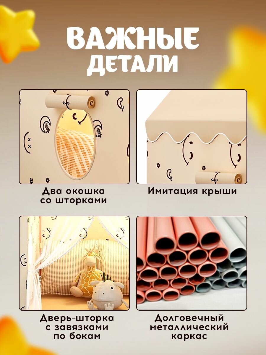 Палатка для игр, бежево-белая, москитная сетка, 130x120x100 см информация: