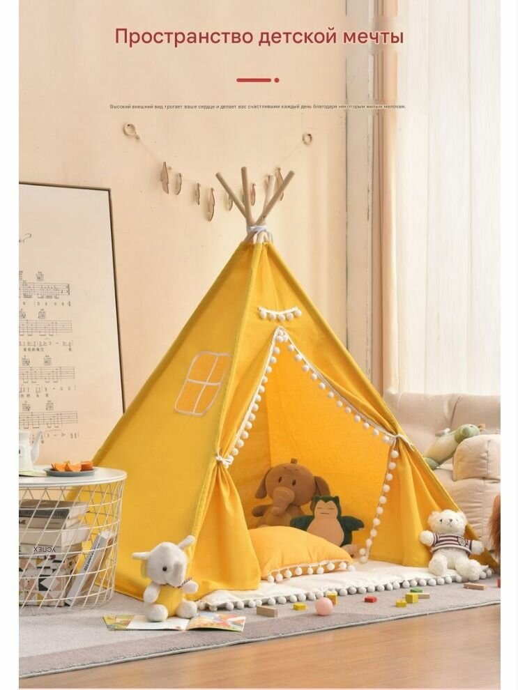 Палатка детская игровая, палатка детская,110*80*80см, Бесплатный коврик, Желтый меховой шарик 2 499 ₽