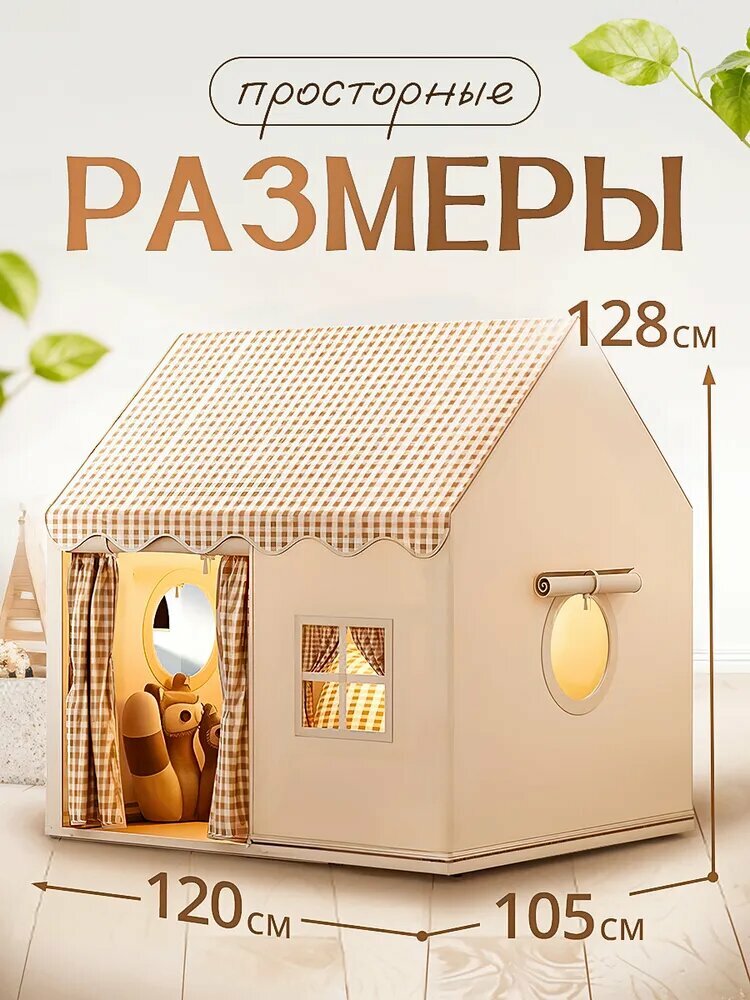 Вигвам детский с пышным ковриком "Бежевый". Палатка игровая