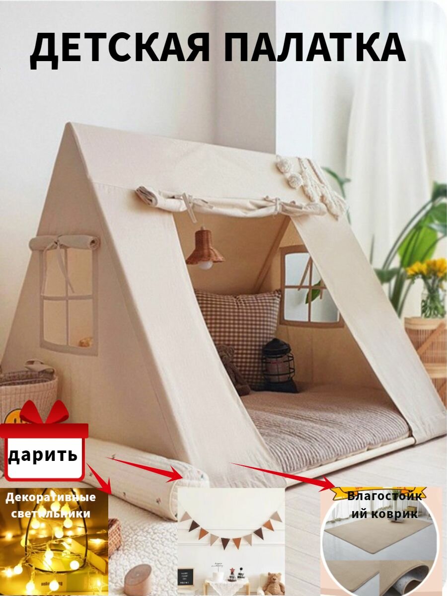10 цен на Вигвам, для детей, лен, бежевый, шатровая геометрия, 120x120х104 см