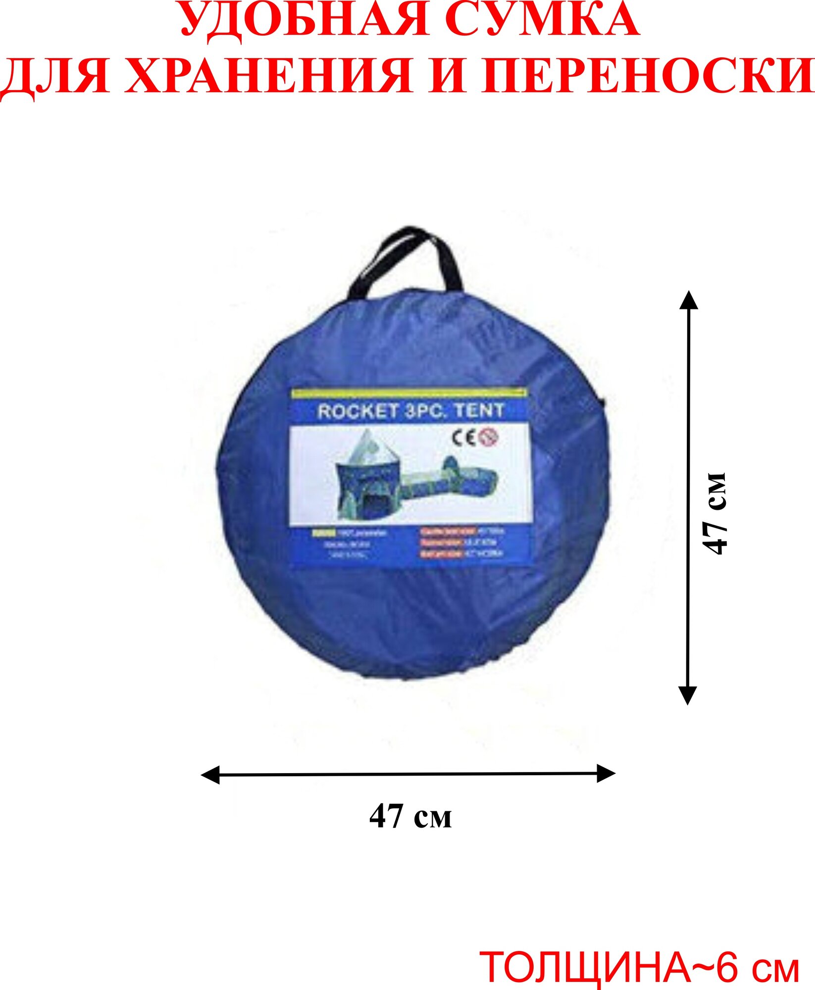 Детская палатка + сухой бассейн с кольцом + туннель, "Замок звездочета", синий №3 информация: