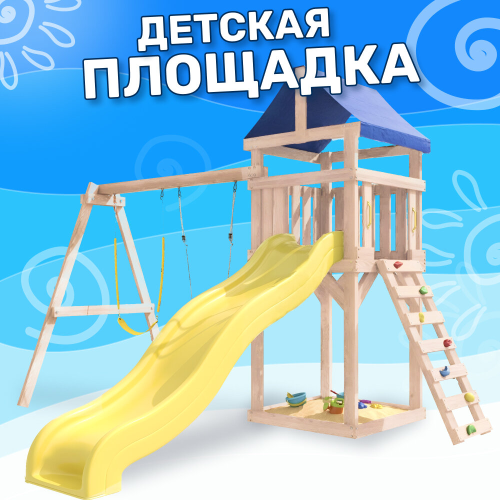 Детская уличная площадка National Tree Company неокрашенная Сlassic с гибкими качелями и лодочкой, деревянный комплекс информация: