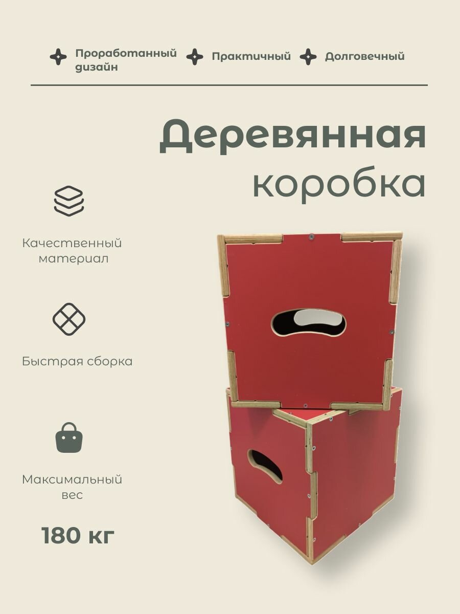 Деревянный Плиобокс красный куб 40х40х40 см информация: