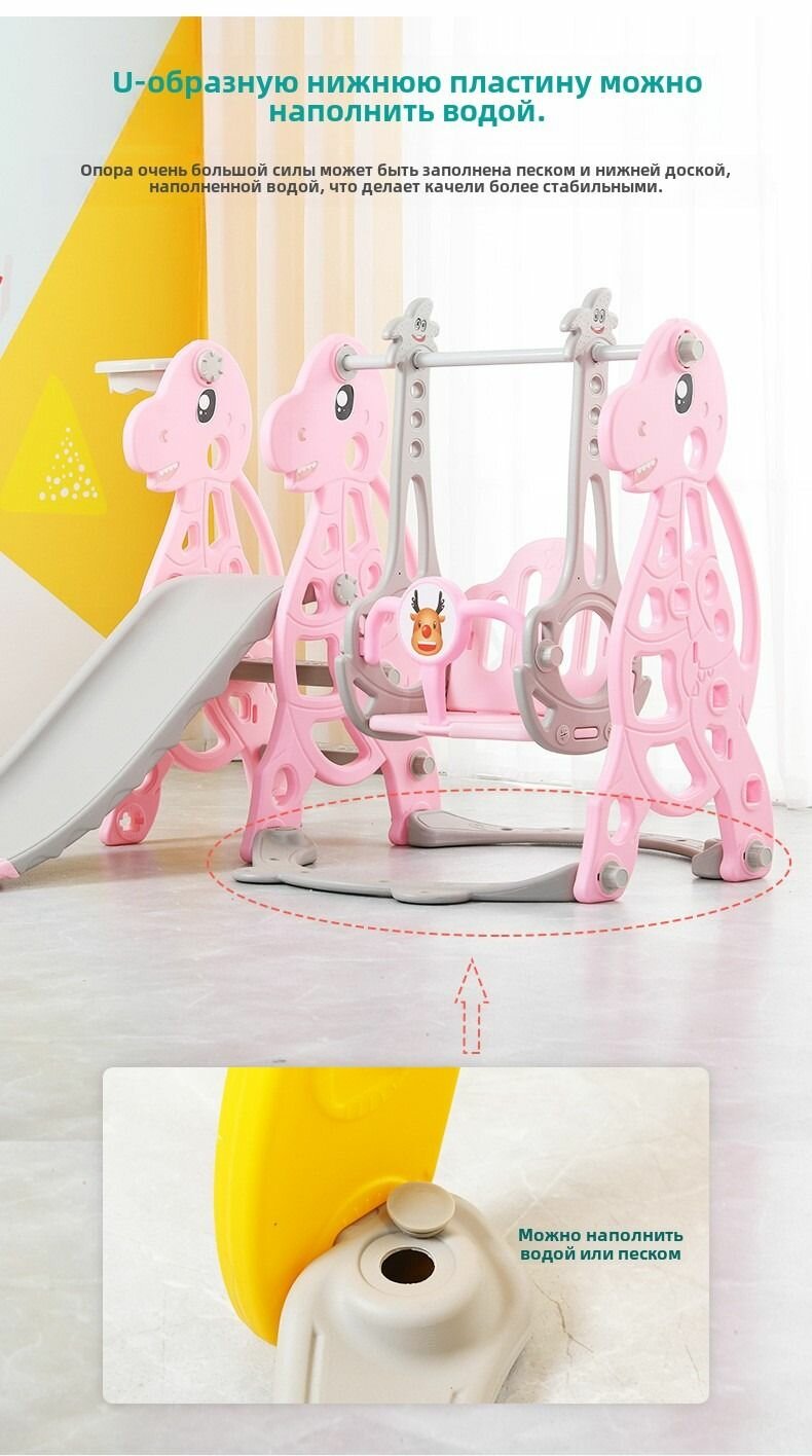 10 цен на Детские горки для использования дома и на улице/качели-динозавр 3-в-1(175*140*105) Розовый.