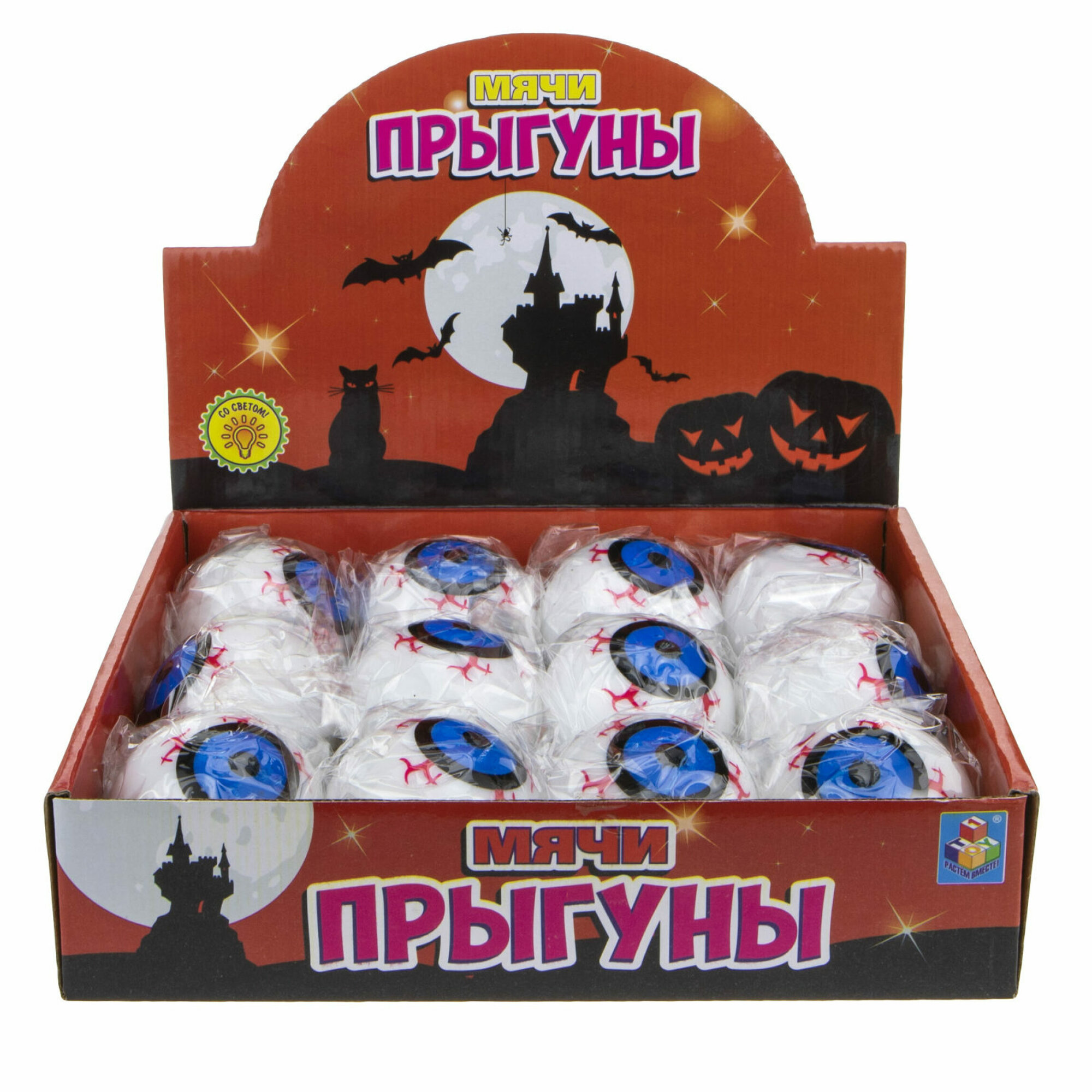 10 цен на Мяч детский Глаз 1TOY попрыгунчик светящийся, игрушка-антистресс для рук, мячик
