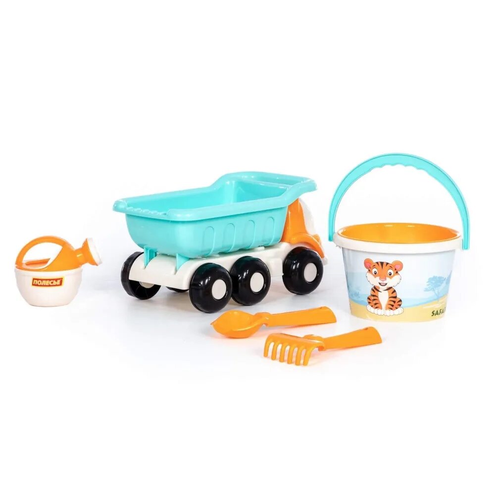 Песочный набор Полесье Кеша №640 Сафари, самосвал, ведро, ситечко и др, пластик, оранжевый информация: