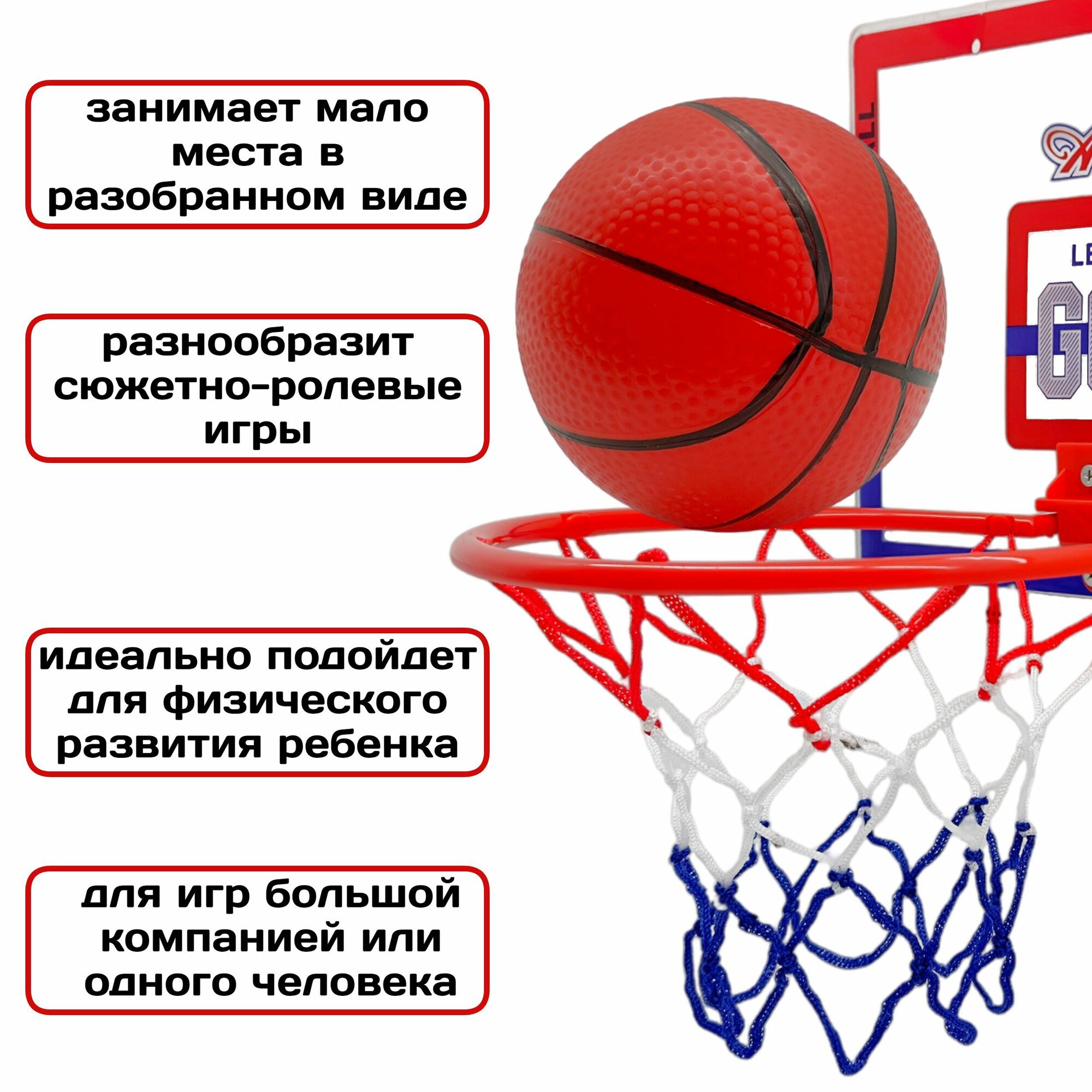 Баскетбольный щит с кольцом, набор детский для игры в баскетбол с мячом, для дома и улицы информация:
