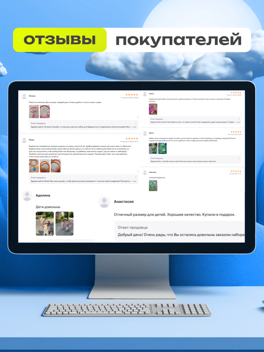 Отзывы на Детский набор для бадминтона с воланом и мячом "Снеговик" (Green)