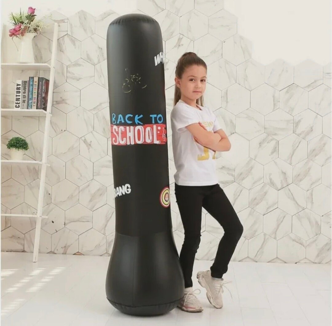 Боксерская надувная груша, для детей, ПВХ, песчаный наполнитель, 160 см, черная информация: