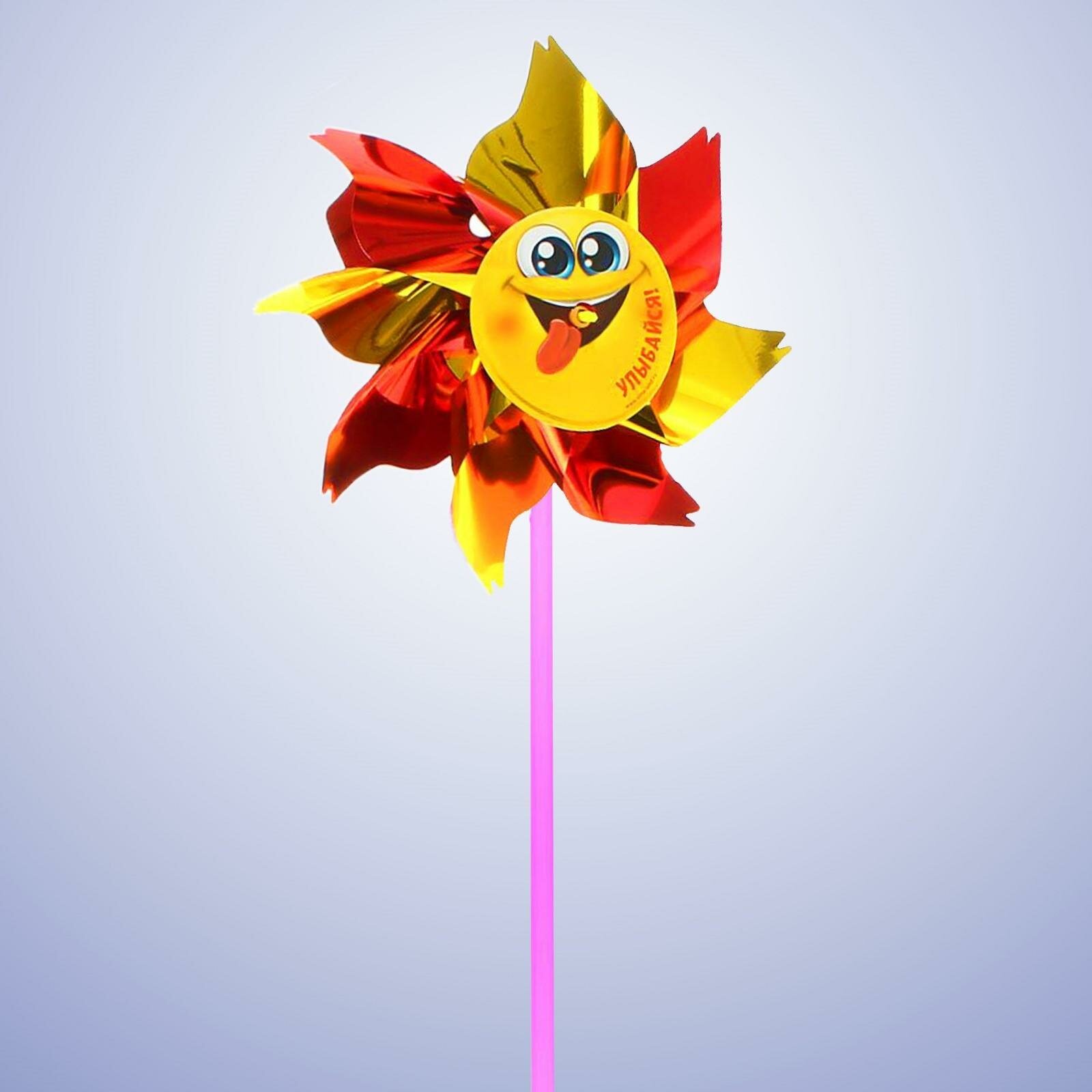 Ветерок детский "Улыбайся!", h=36 см и d=17 см, фольга, золотистый/красный информация: