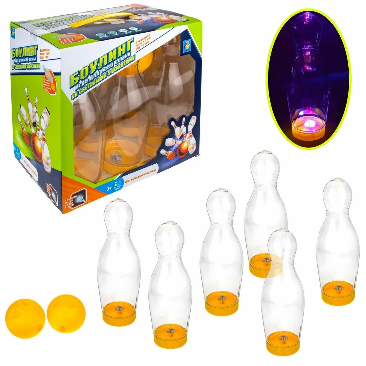 Игра "Боулинг" 6 кеглей, 2 шара, для всей семьи, со световыми эффектами информация: