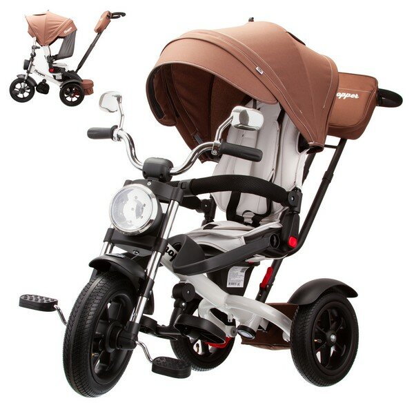 Велосипед Qplay Chopper, 3 колеса, управление для родителей, надувные шины, коричневый информация: