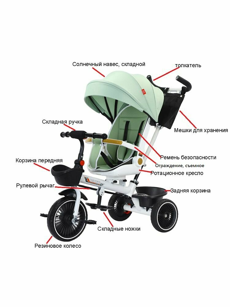 Детский трехколесный велосипед, складной, вращающееся сиденье, от 1 до 6 лет информация: