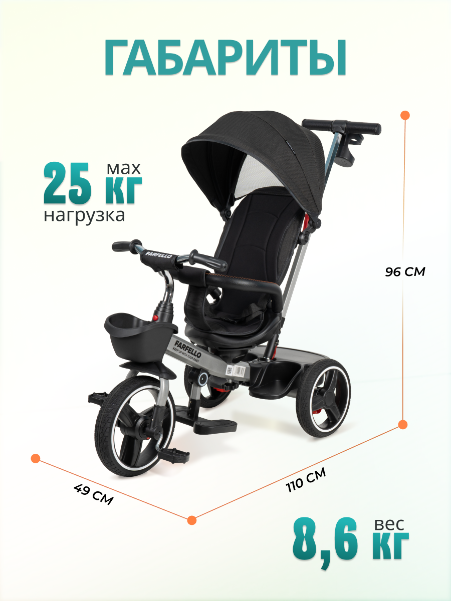 Велосипед трехколесный детский Farfello 6588-A, до 5 лет, черный информация: