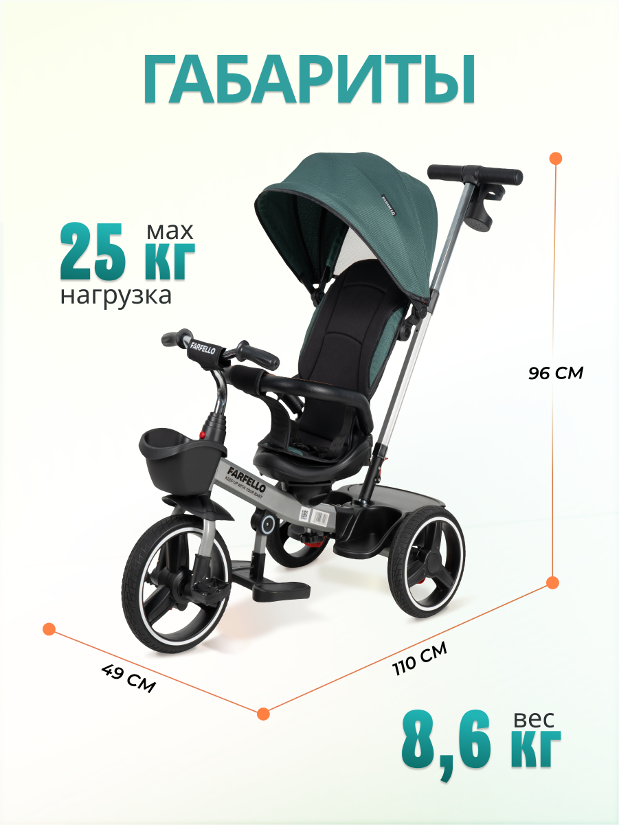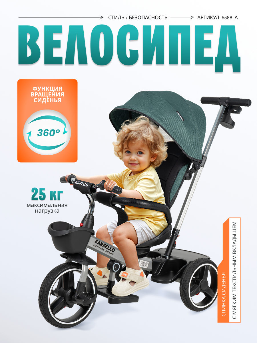Велосипед трехколесный детский Farfello 6588-A, до 5 лет, зеленый информация: