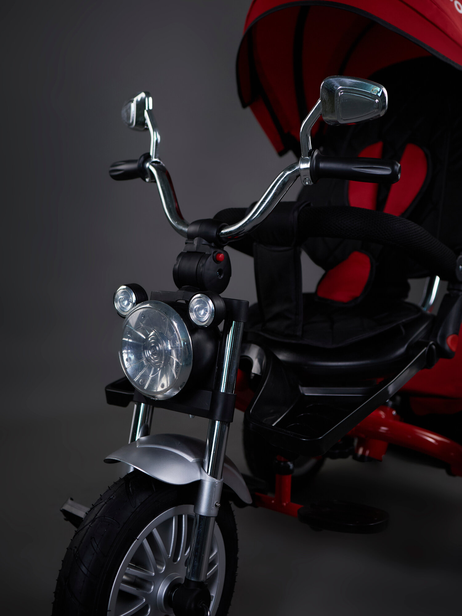 Велосипед трехколесный детский, с родительской ручкой и козырьком, 658, красный