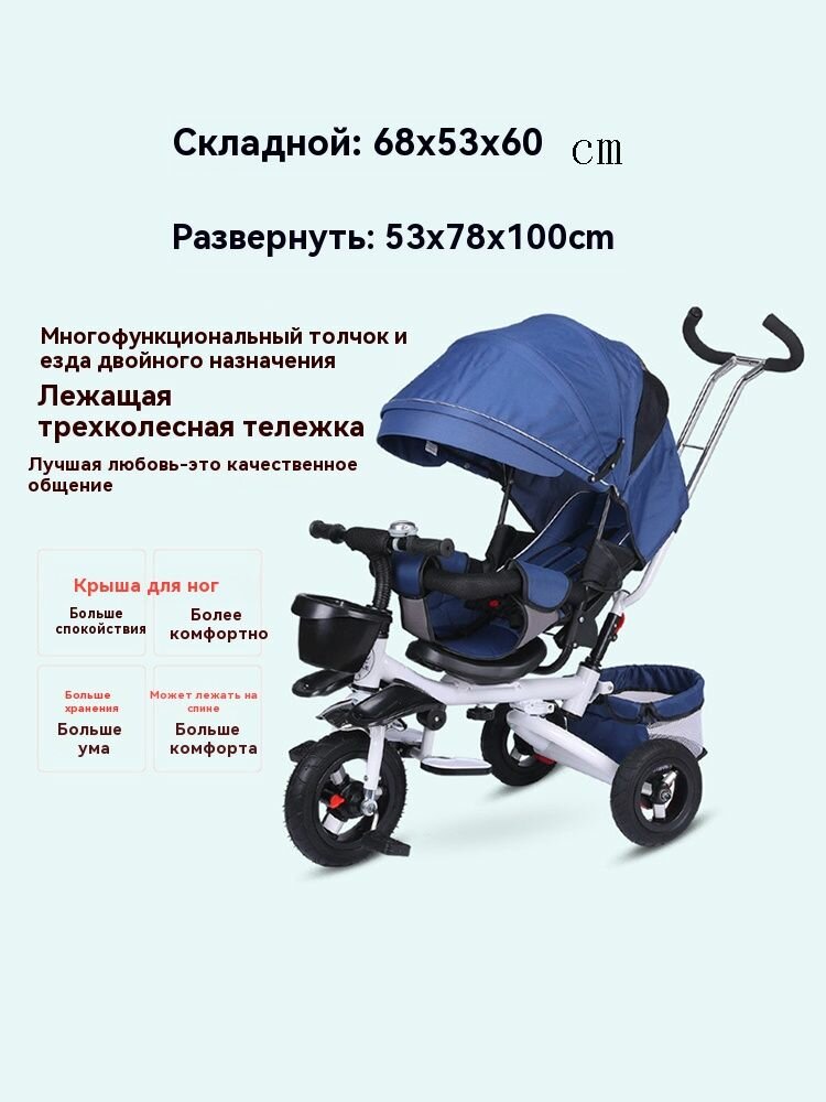 Велосипед-коляска, с козырьком и ручкой, трехколесный, черно-синий 13 169 ₽