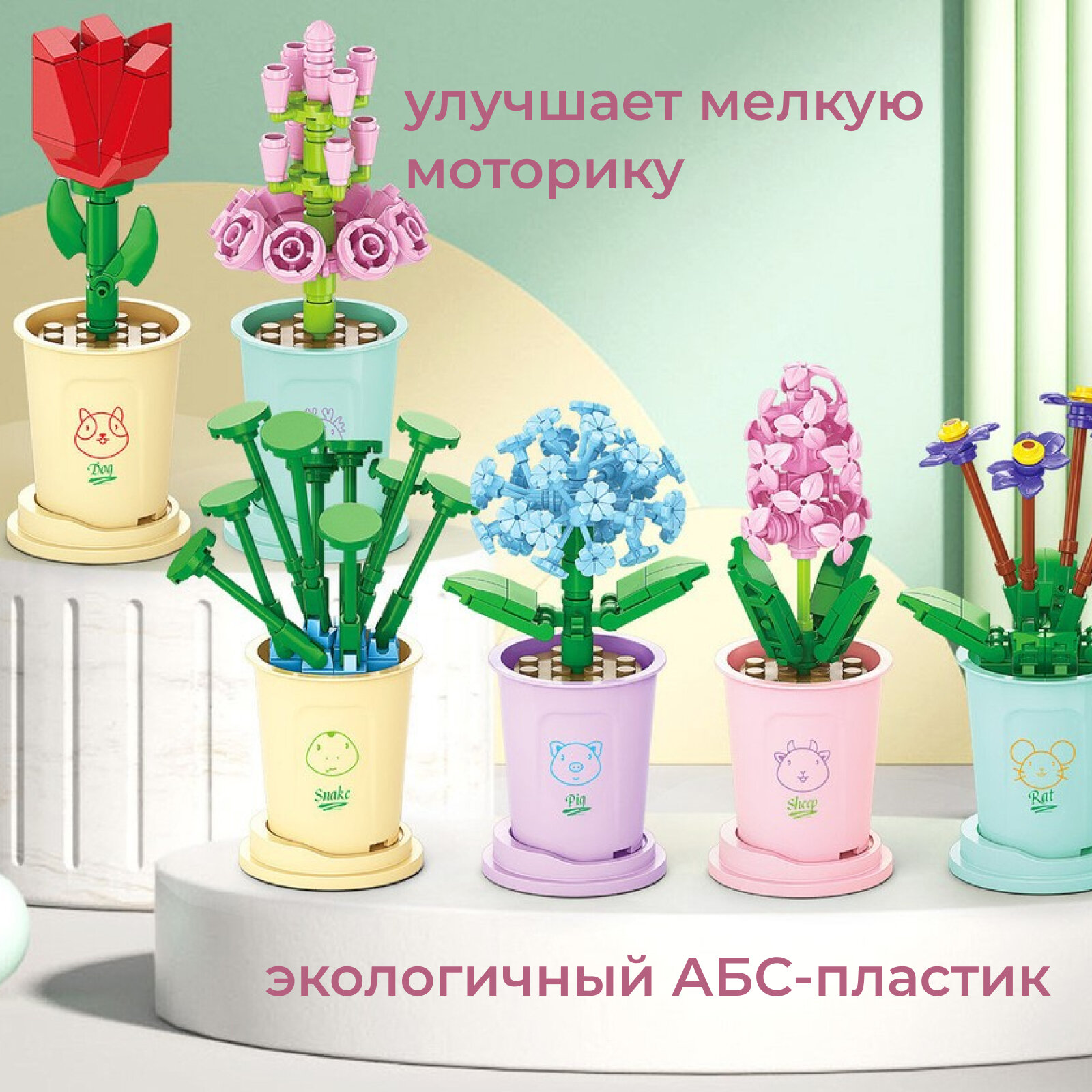 Отзывы на Детский конструктор пластиковый коллекционный "Цветок в горшке" 56 деталей флорист