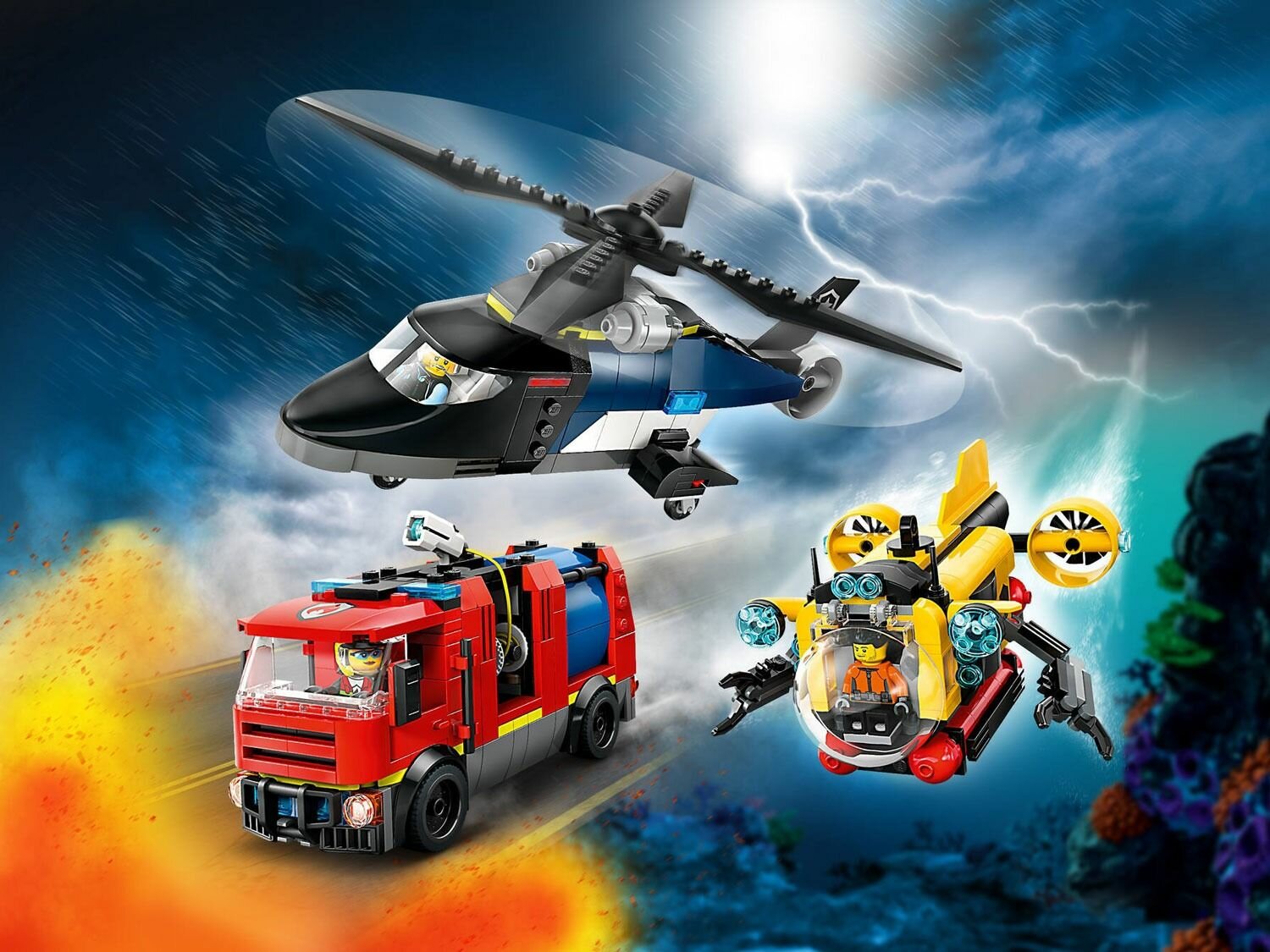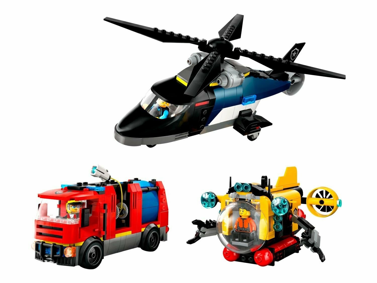 10 цен на Конструктор LEGO City Вертолет, пожарная машина и подводная лодка, 874 детали, 60462