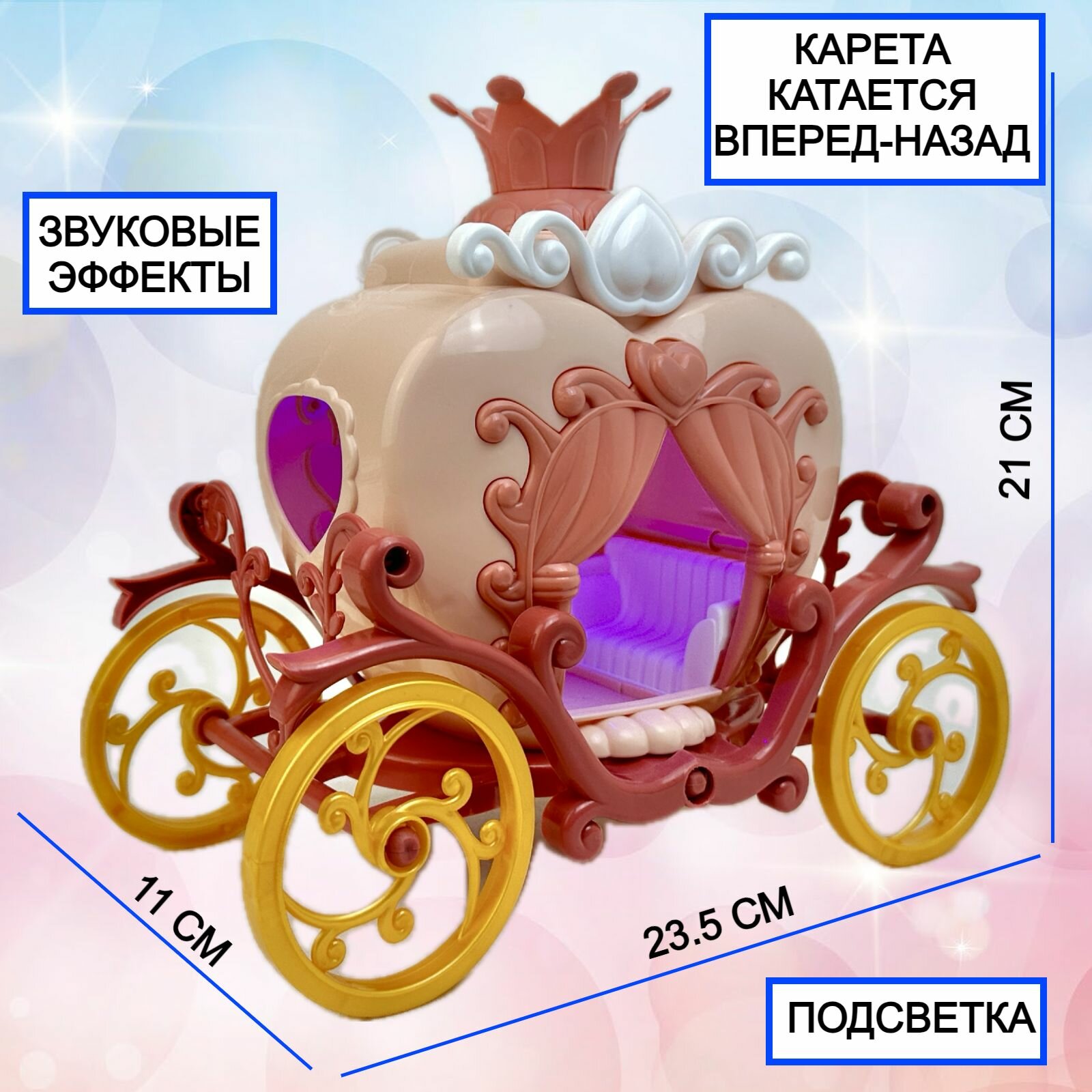 10 цен на Игровой набор Карета с куклой и лошадью, фигурка лошадки, кукла, карета с подсветкой, звук, набор для девочек, 47х21х11 см