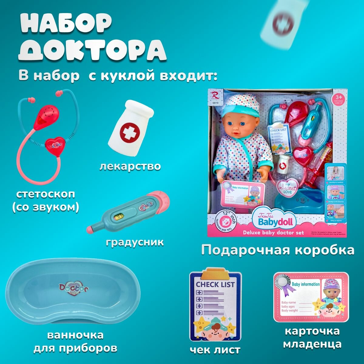 Отзывы на Кукла пупс reborn для девочки с аксессуарами набор доктора с аксессуарами