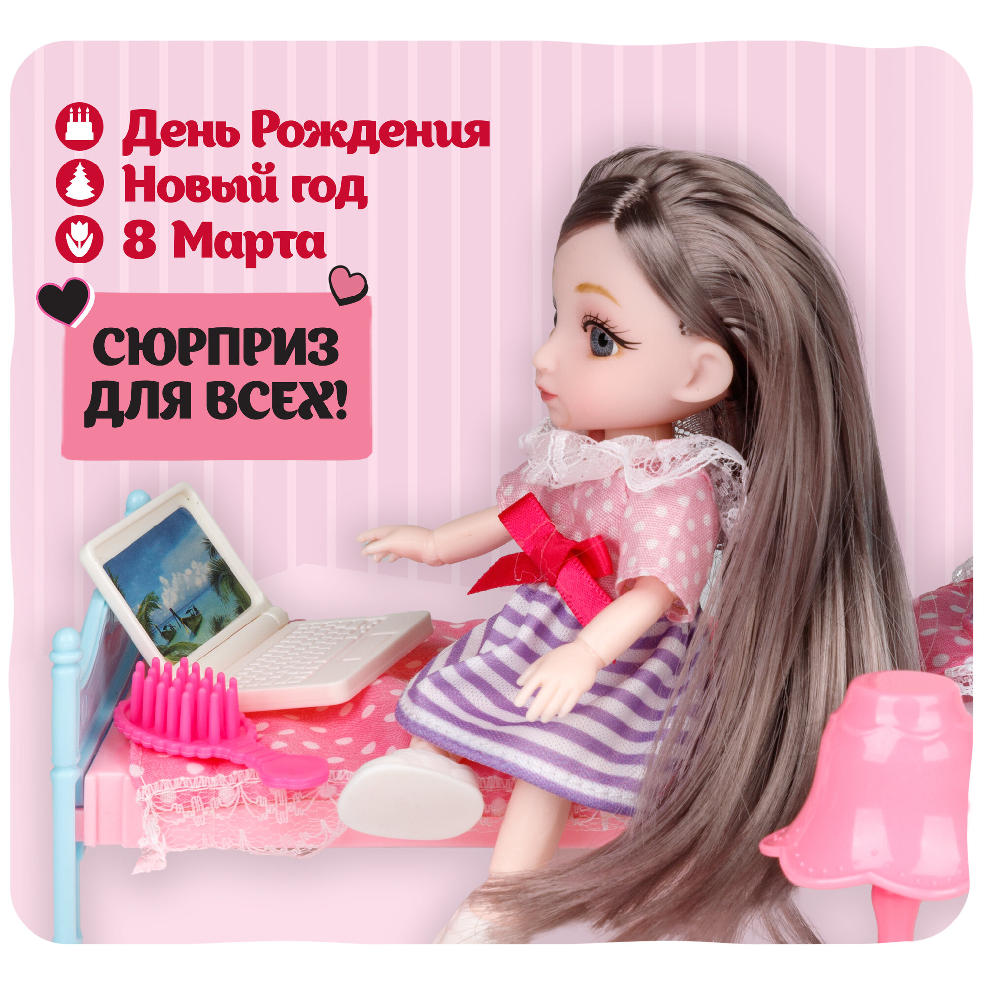 10 цен на Игровой набор Alisa Kawaii min "Спальня" кукла 15,2 см, в кор. 27х19х11 см