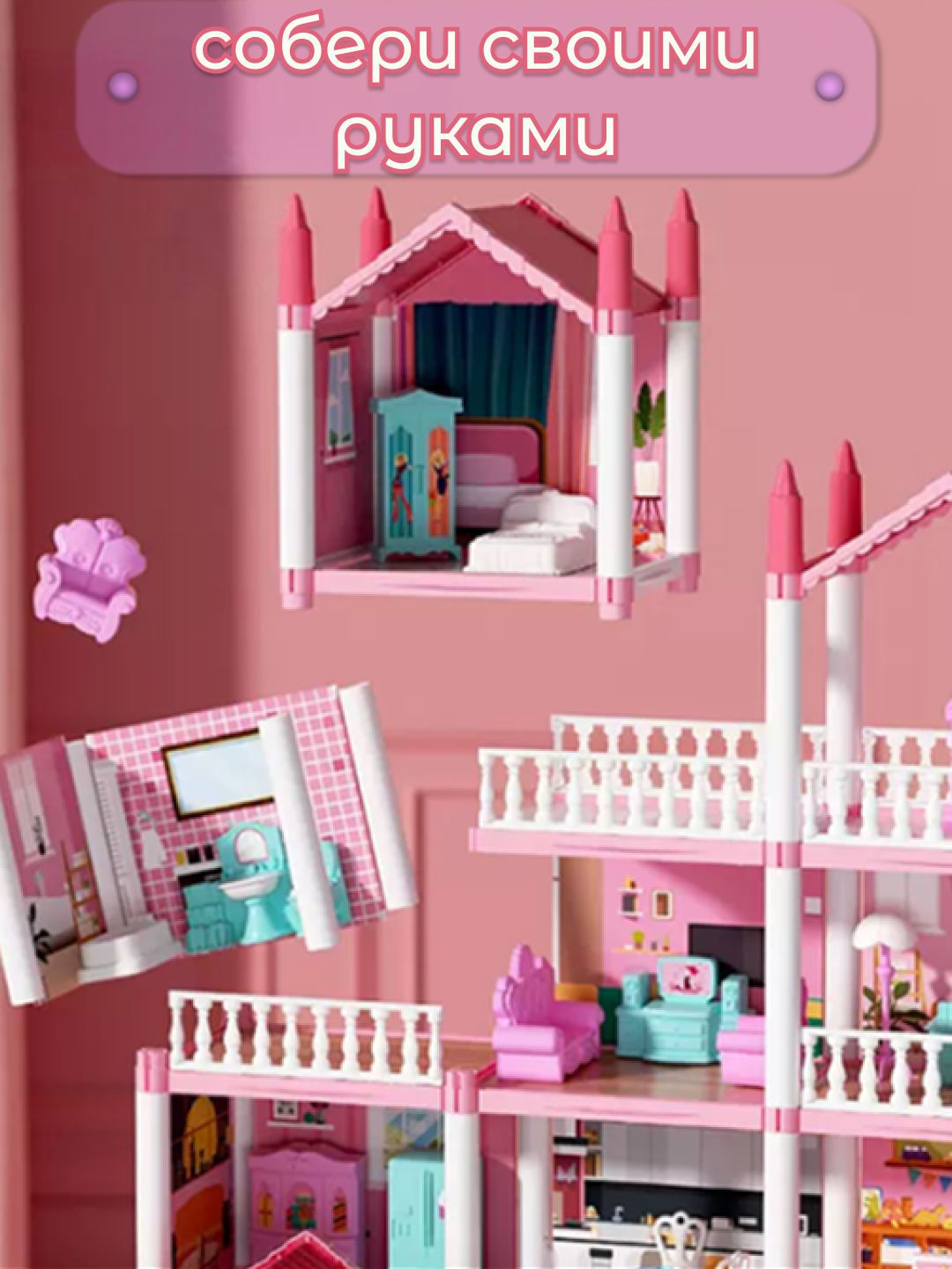 Отзывы на Кукольный домик - конструктор, домик для кукол 14 комнат, с подсветкой, розовый