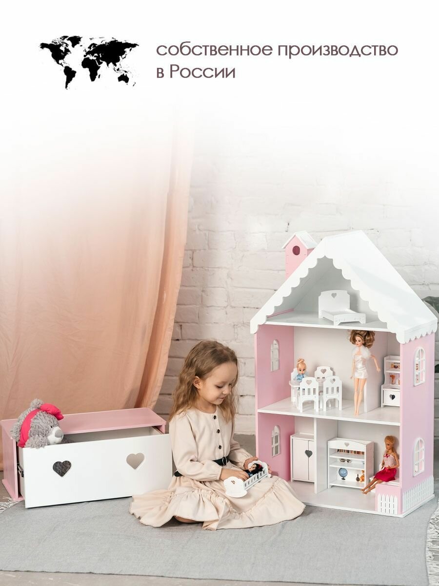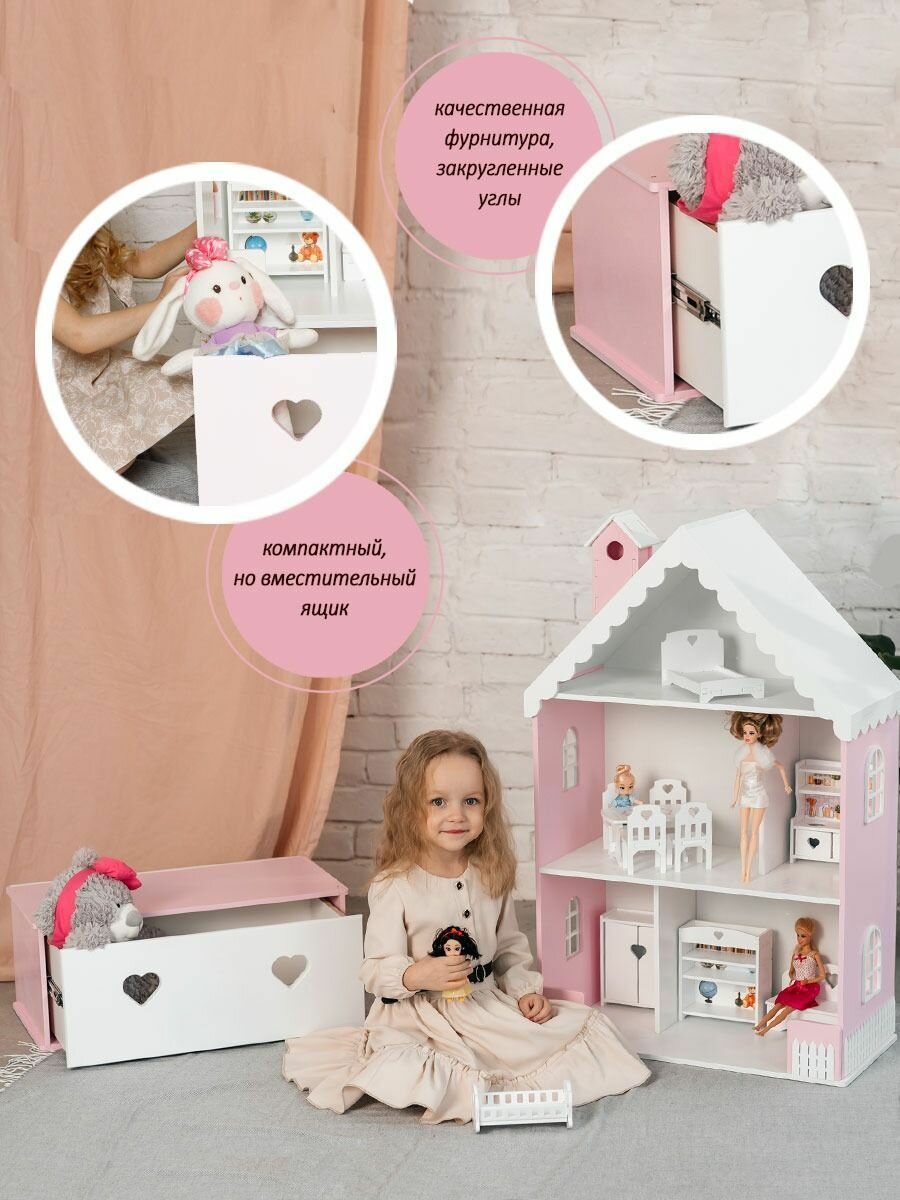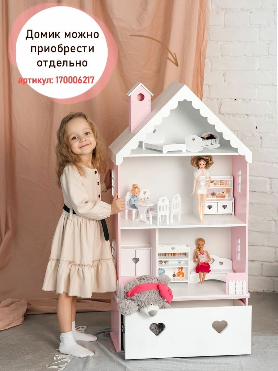 10 цен на Комод для кукольного домика Вероника , Ящик для игрушек , Мебель в детскую , Розово-белый