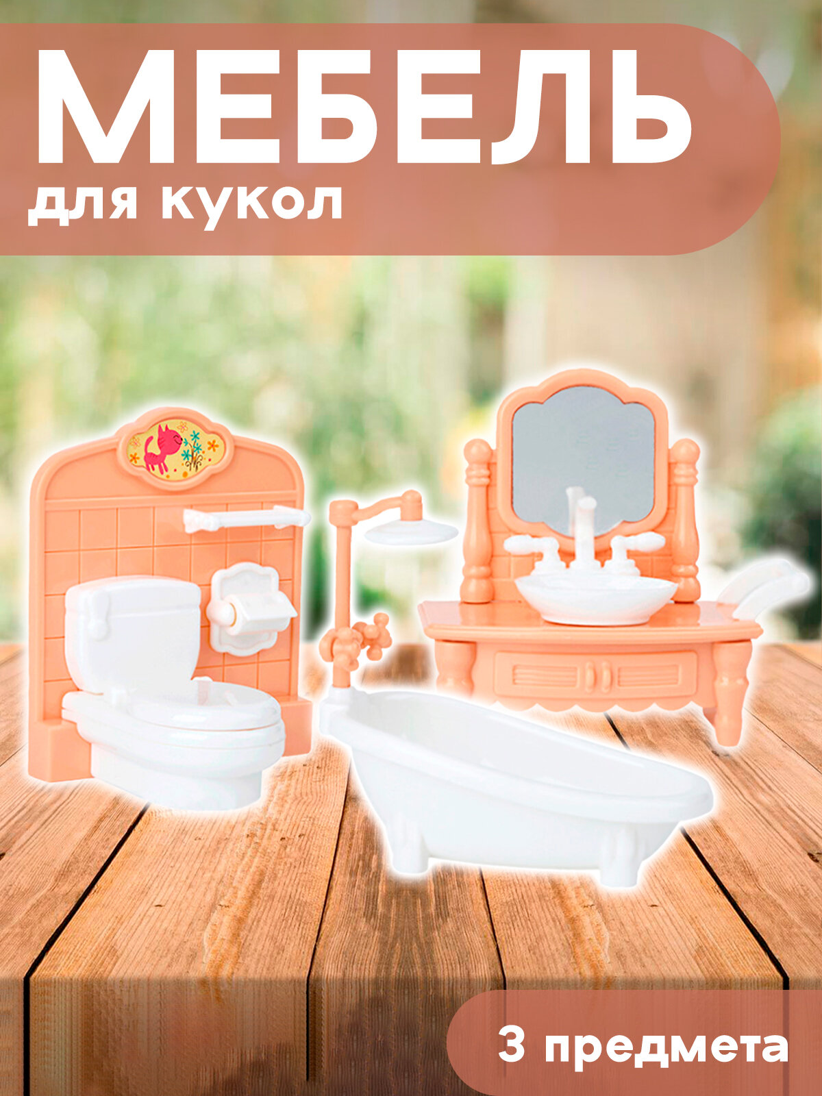 10 цен на Набор мебели MISCELLAN "Ванная", для кукол, пластик, бежевый, 3 предмета
