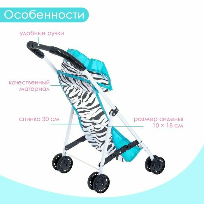 Коляска для кукол, летняя Зебра, металлический каркас информация:
