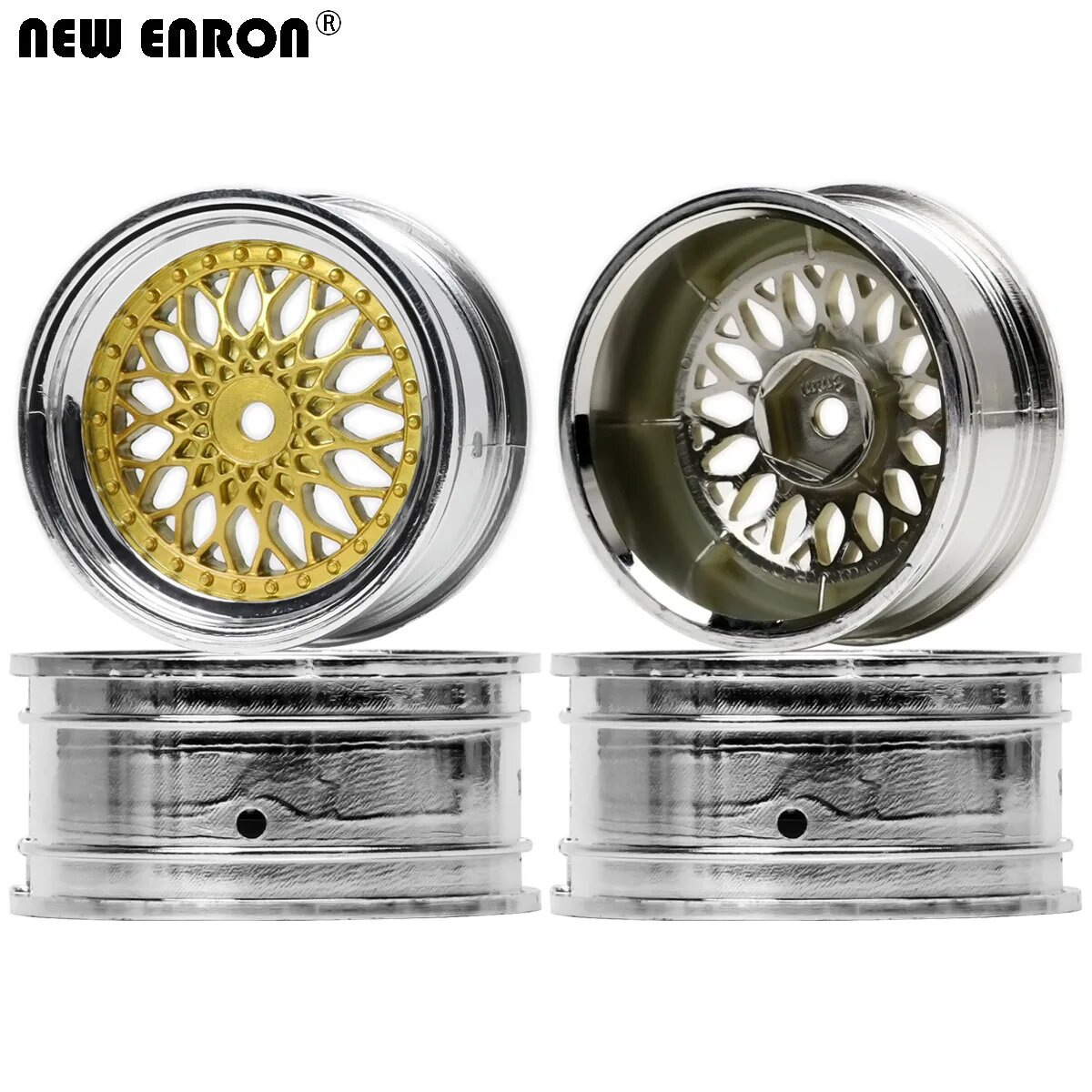 Колесные диски ENRON нейлон 52 мм 3 мм/6 мм/9 мм 4 шт. для радиоуправляемых автомобилей 1/10, Gold Silver(6MM) 493 ₽