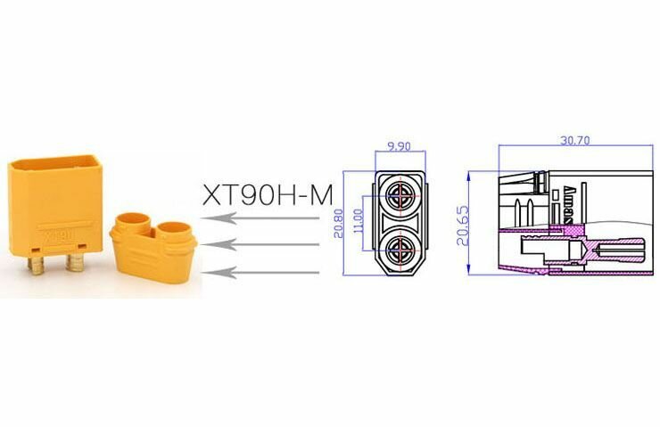 Разъем силовой Amass XT90H-M "папа" с проводами 10AWG 10 см. AM-9025A информация: