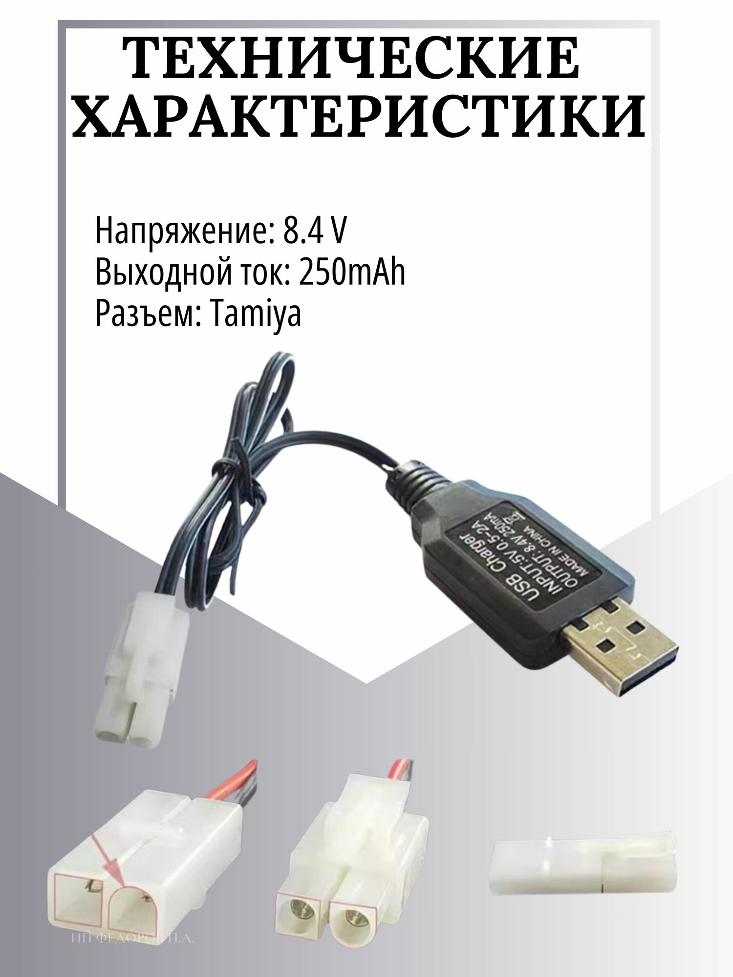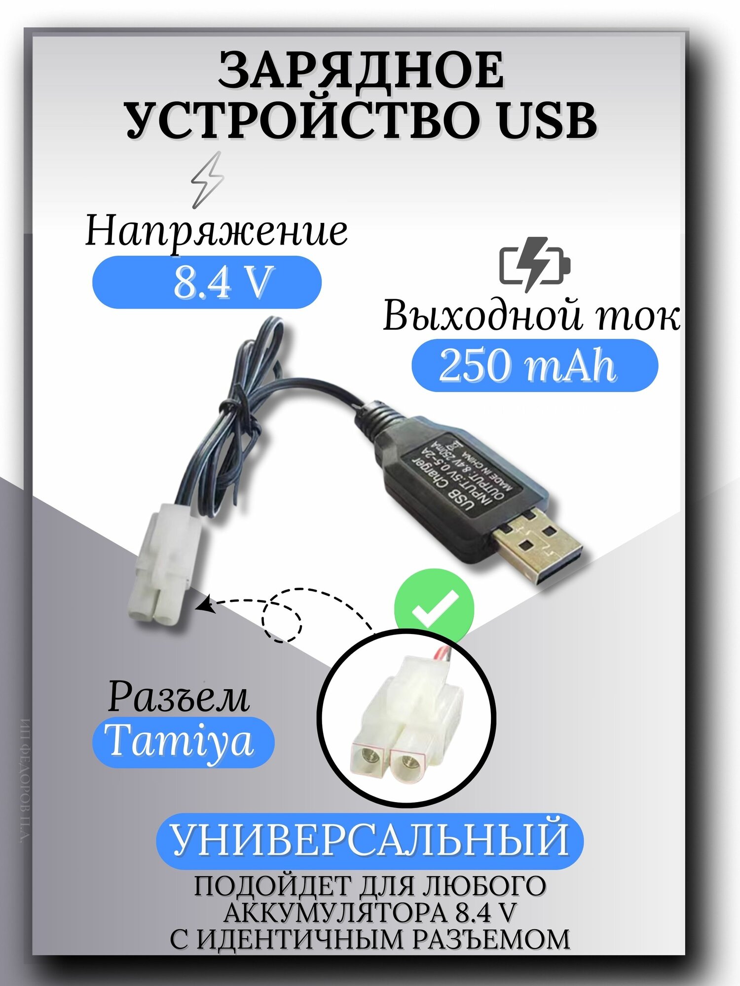 Зарядное устройство для аккумуляторов USB 8.4V, разъём Tamiya информация: