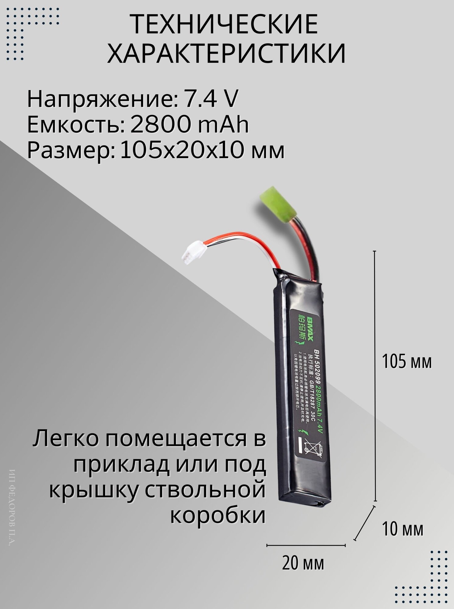 Bmax Аккумулятор для страйкбольного оружия (привода), Li-Рo, 7.4 В, 2800 мАч, Mini Tamiya информация: